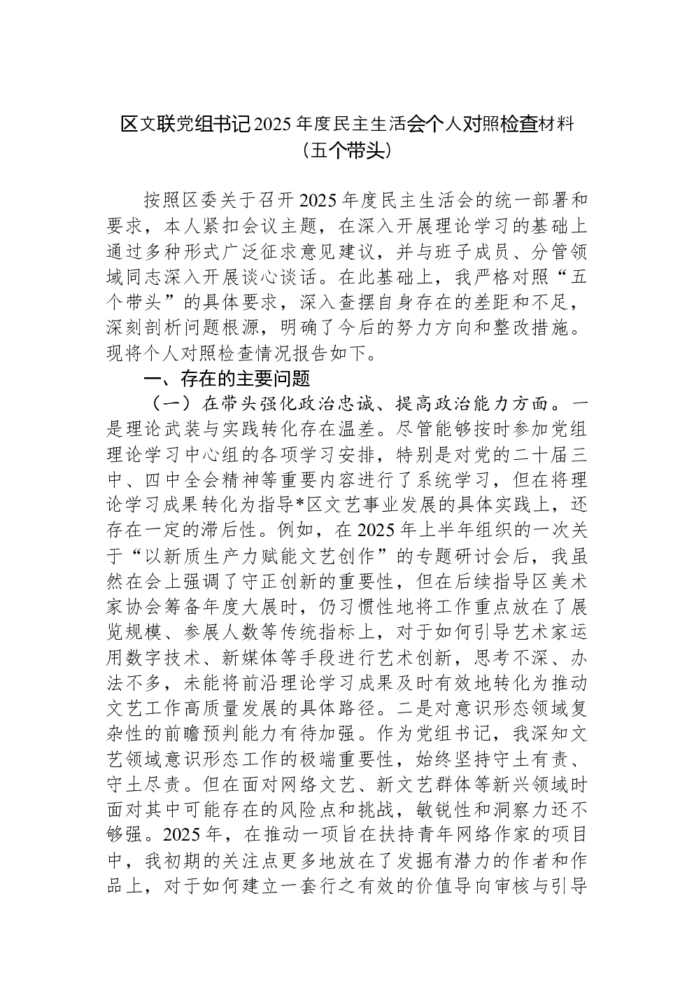 (22篇)2022年度民主生活会六个带头对照检查材料