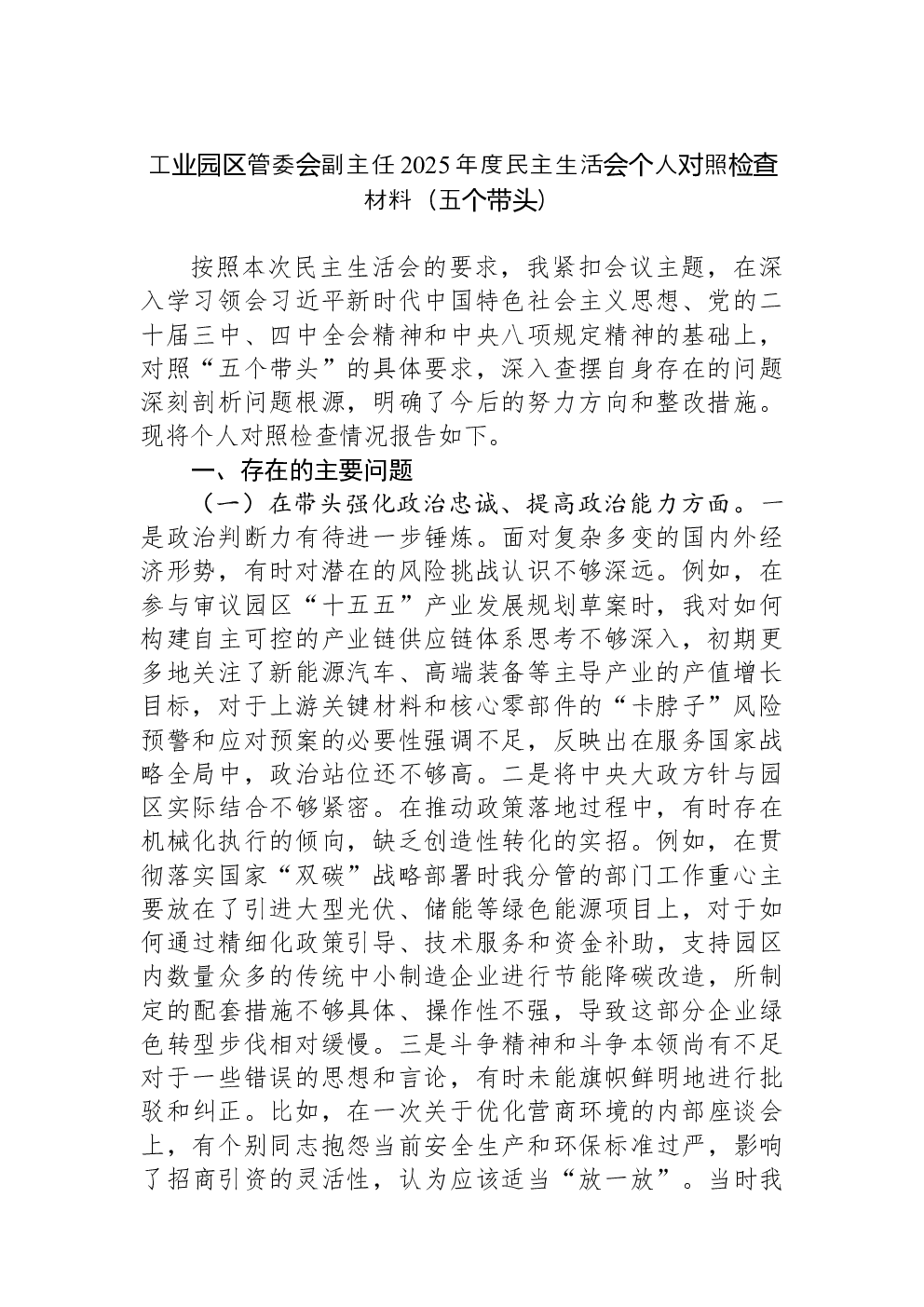 领导班子2022年民主生活会(六个带头)对照检查材料