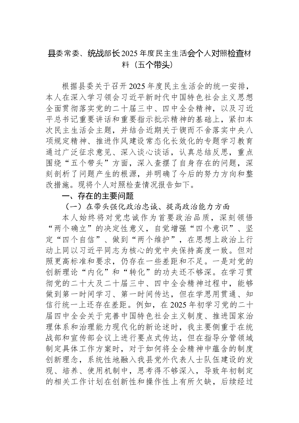(22篇)2022年度民主生活会六个带头对照检查材料