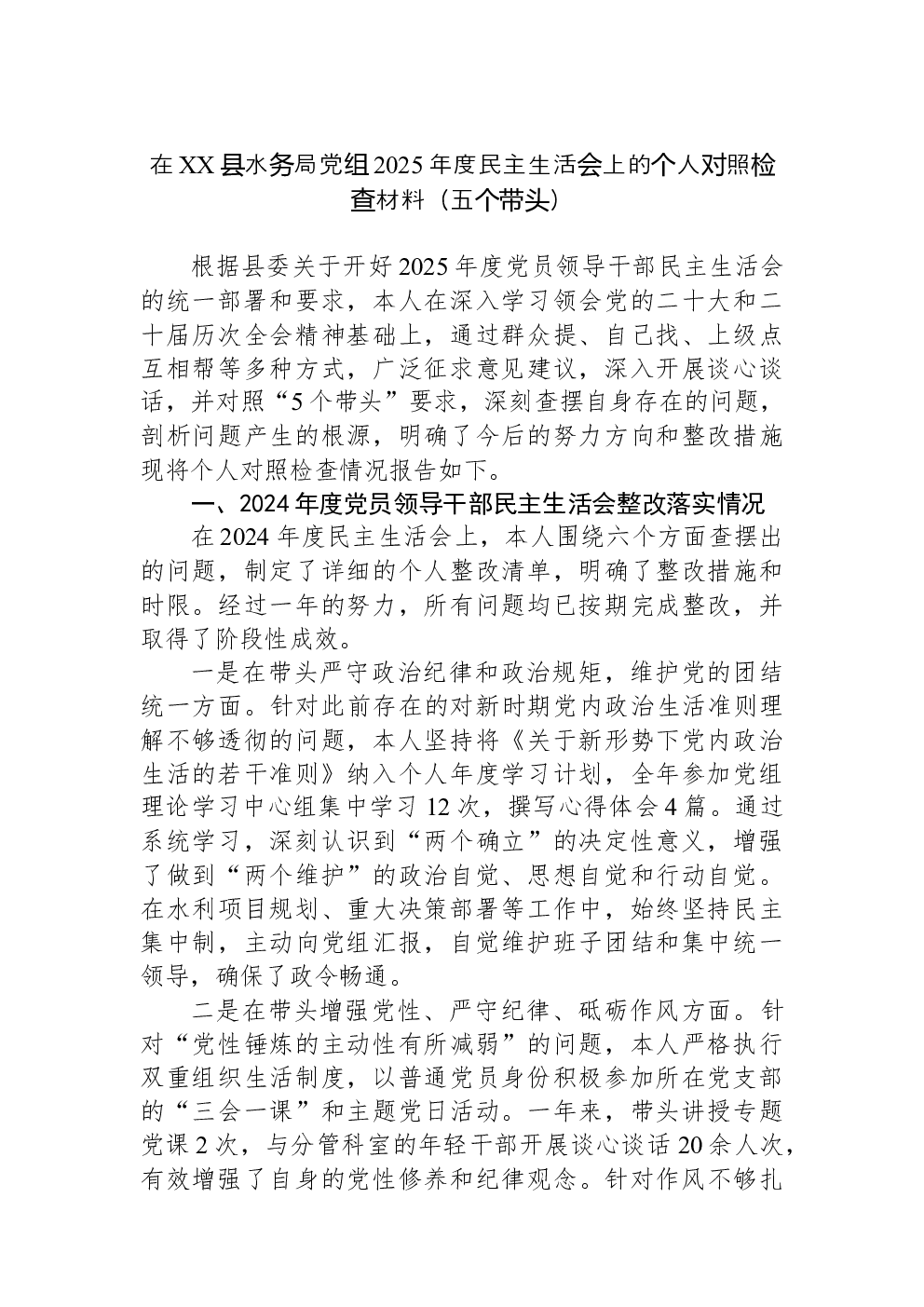 (22篇)2022年度民主生活会六个带头对照检查材料