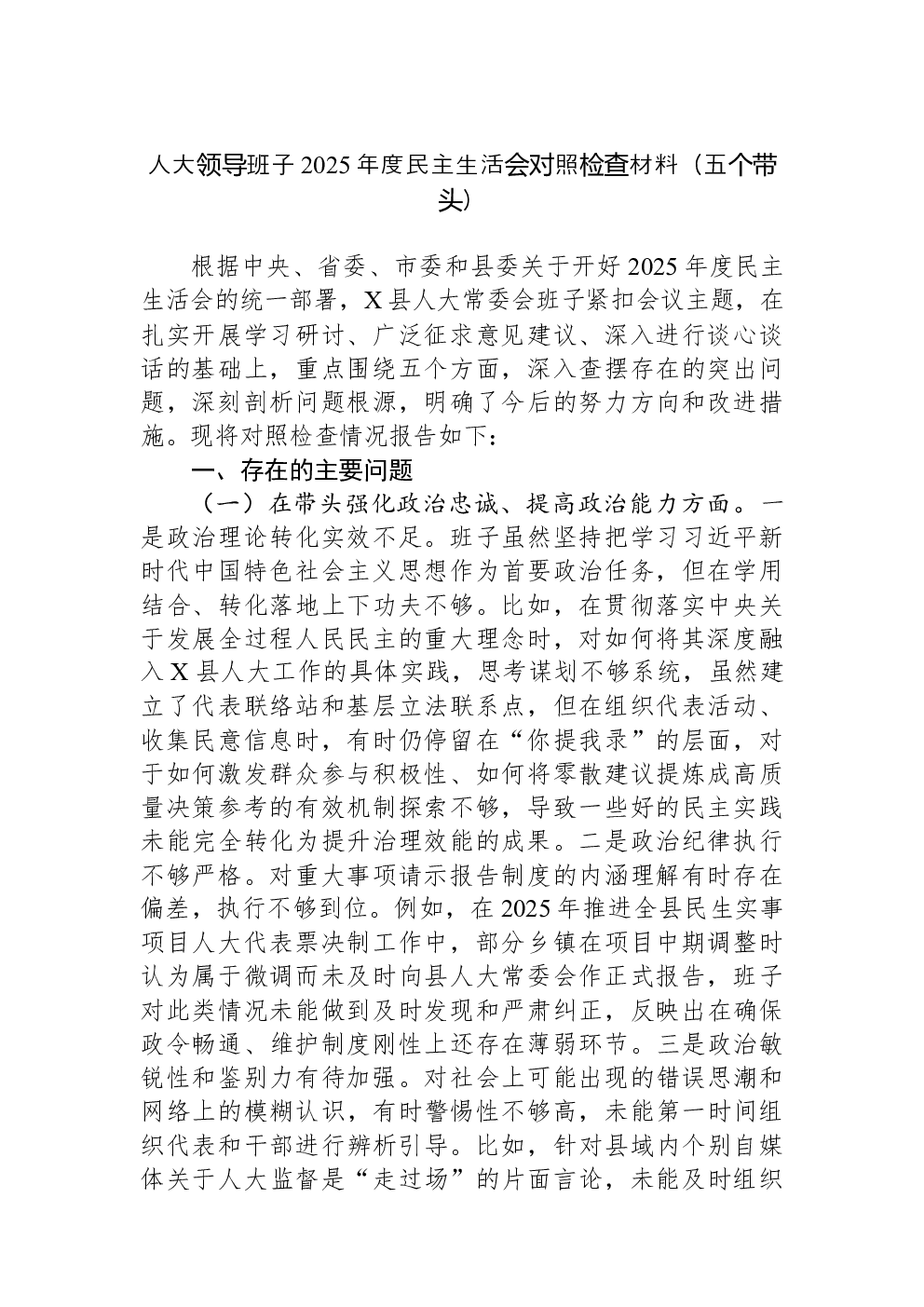 (22篇)2022年度民主生活会六个带头对照检查材料