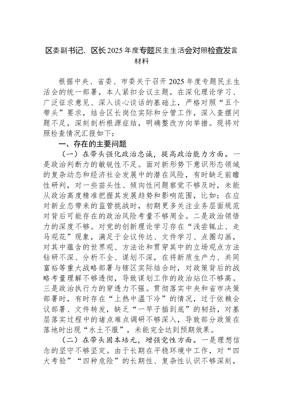 (22篇)2022年度民主生活会六个带头对照检查材料