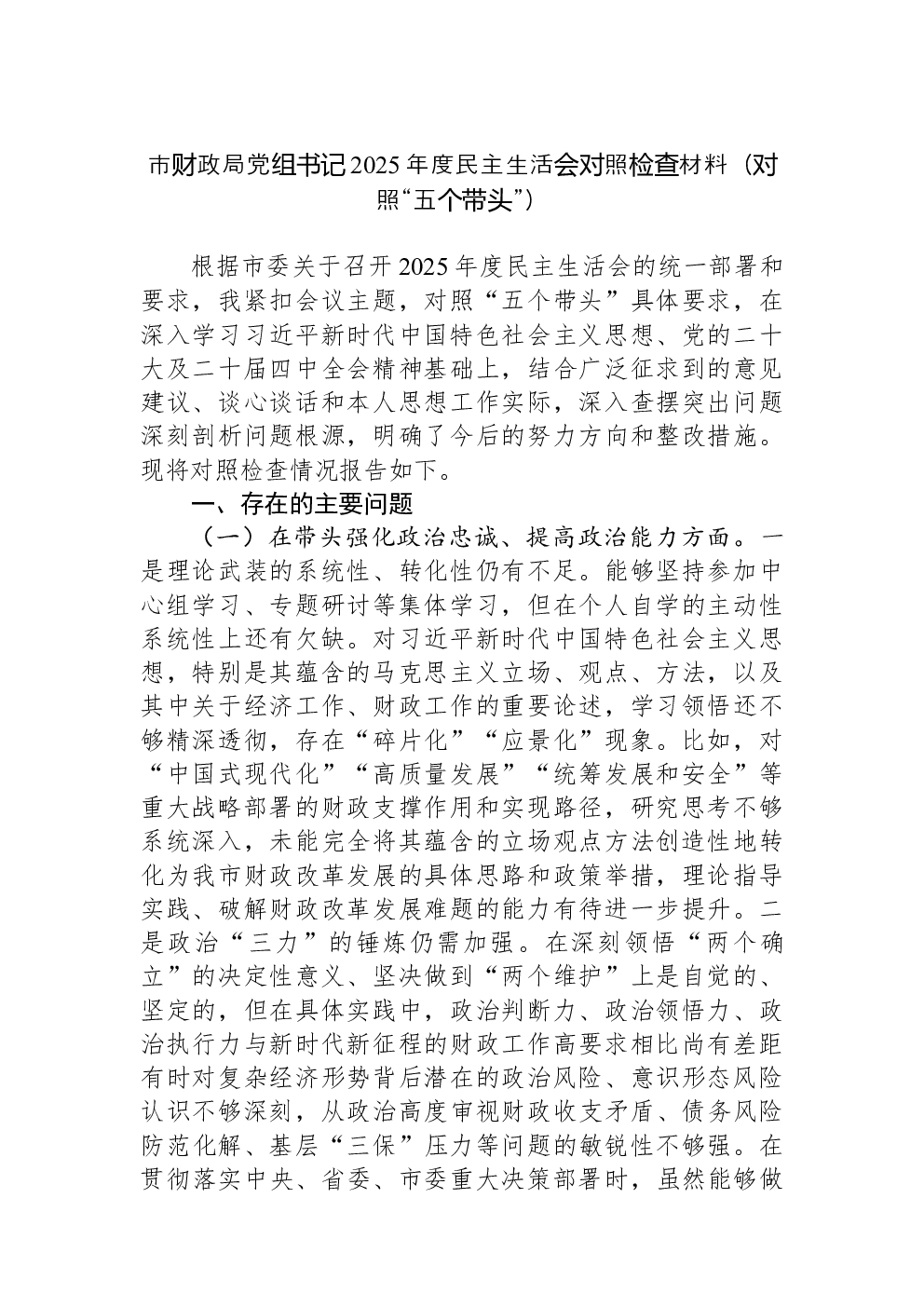 (22篇)2022年度民主生活会六个带头对照检查材料