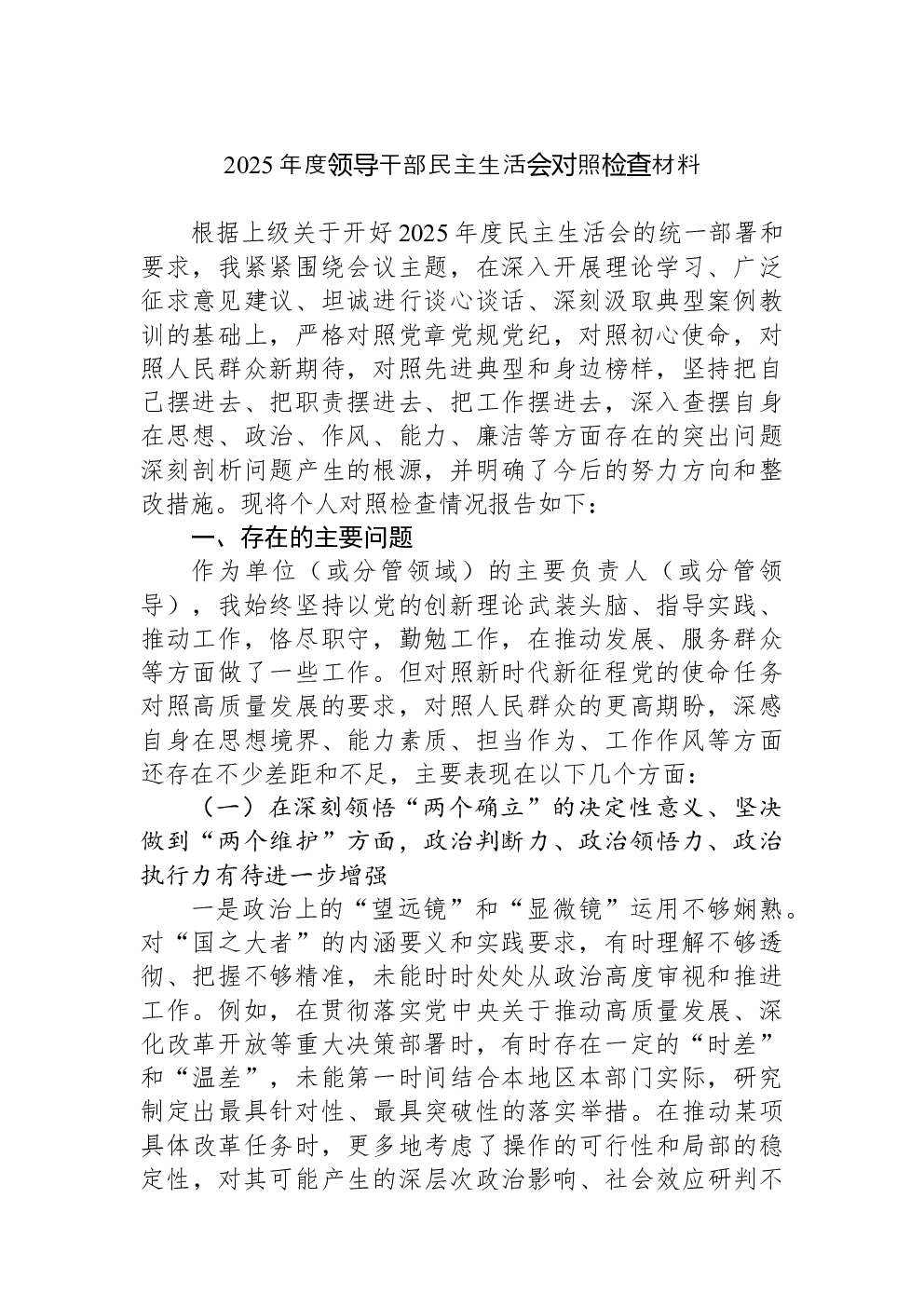 (22篇)2022年度民主生活会六个带头对照检查材料