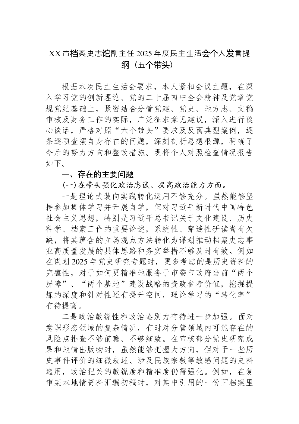 (22篇)2022年度民主生活会六个带头对照检查材料