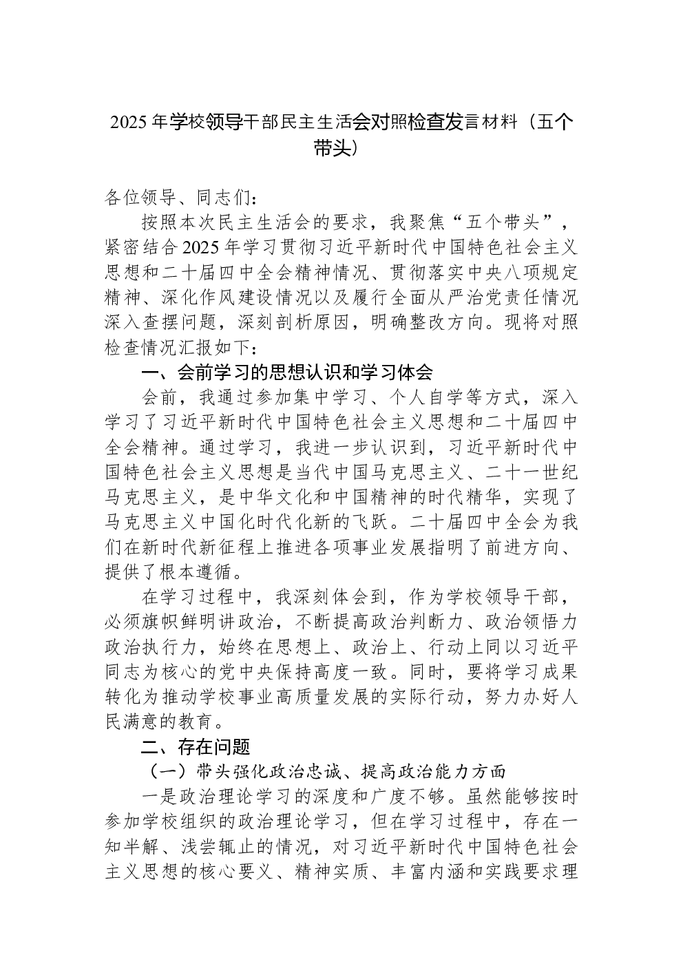 领导班子2022年民主生活会(六个带头)对照检查材料