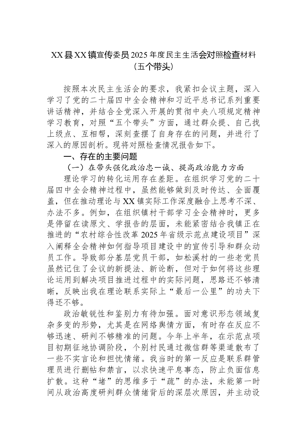 (22篇)2022年度民主生活会六个带头对照检查材料