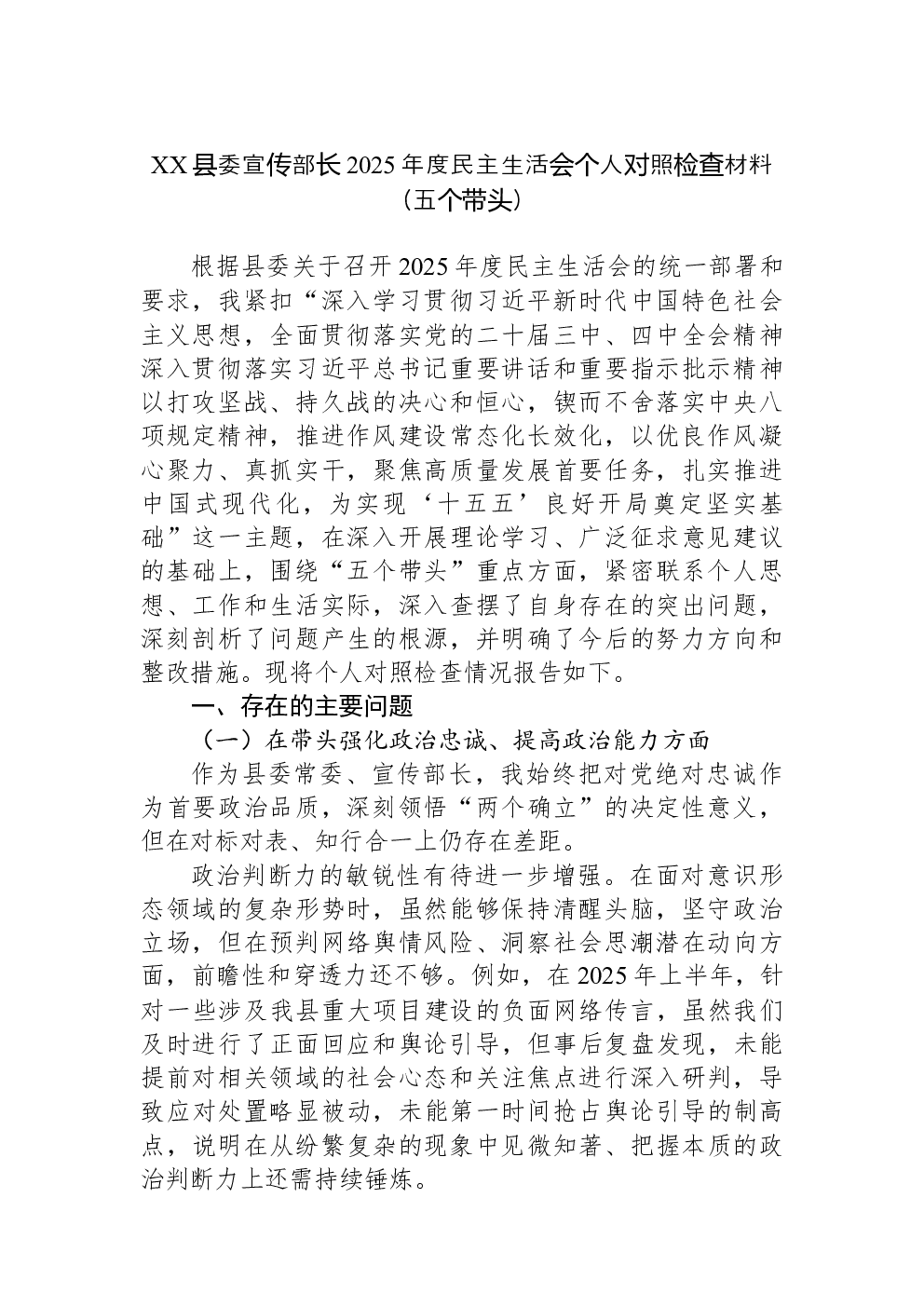 (22篇)2022年度民主生活会六个带头对照检查材料