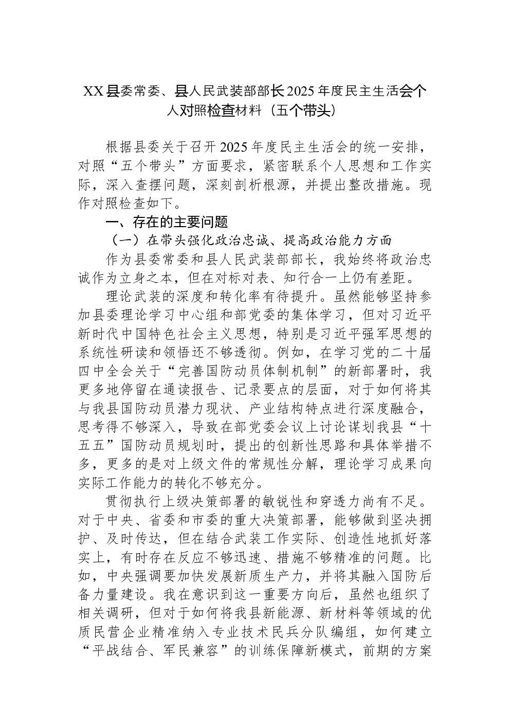 (22篇)2022年度民主生活会六个带头对照检查材料