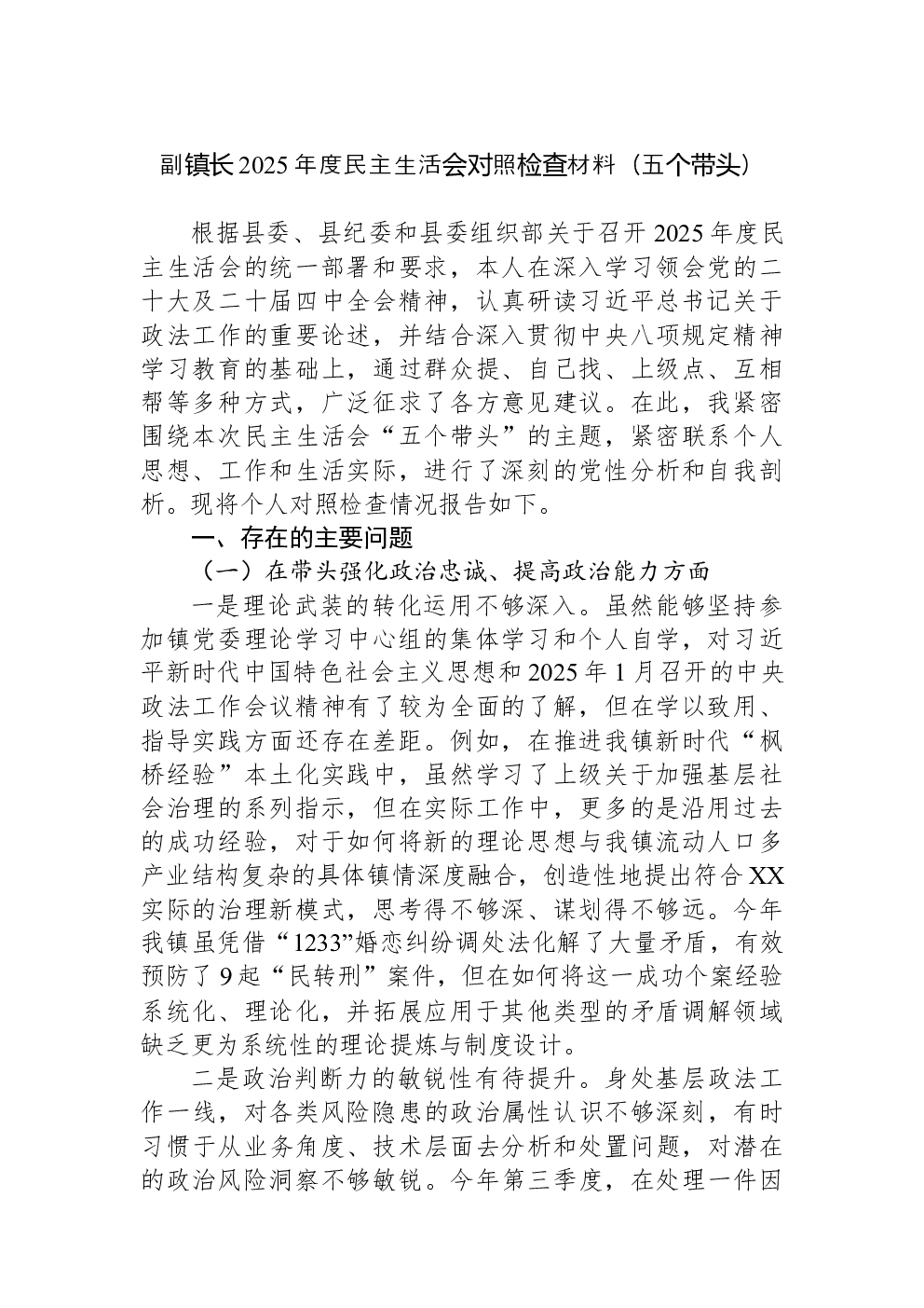 (22篇)2022年度民主生活会六个带头对照检查材料