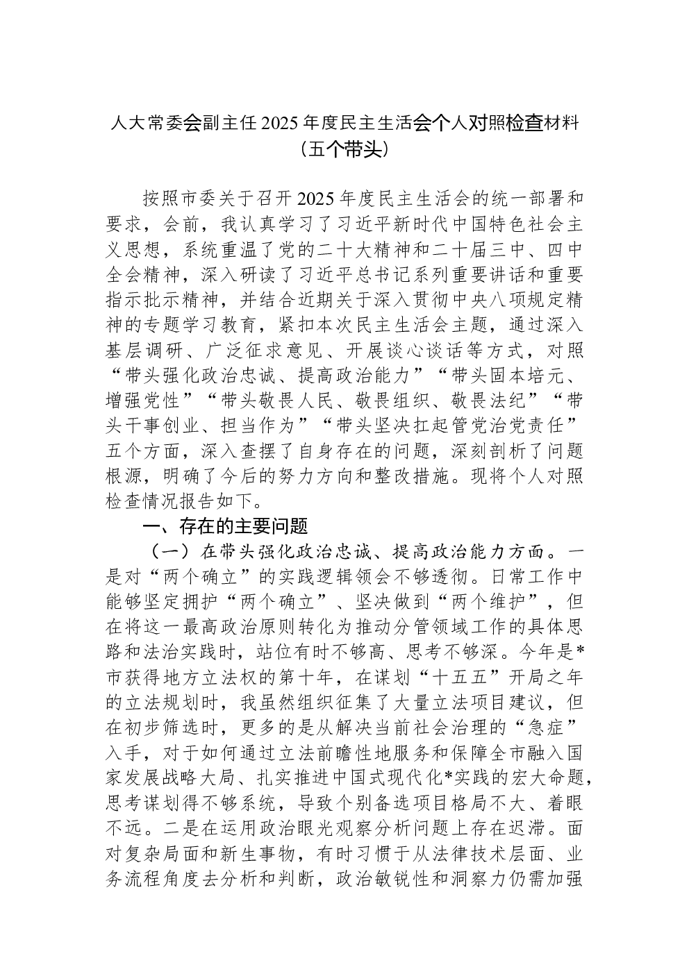 (22篇)2022年度民主生活会六个带头对照检查材料
