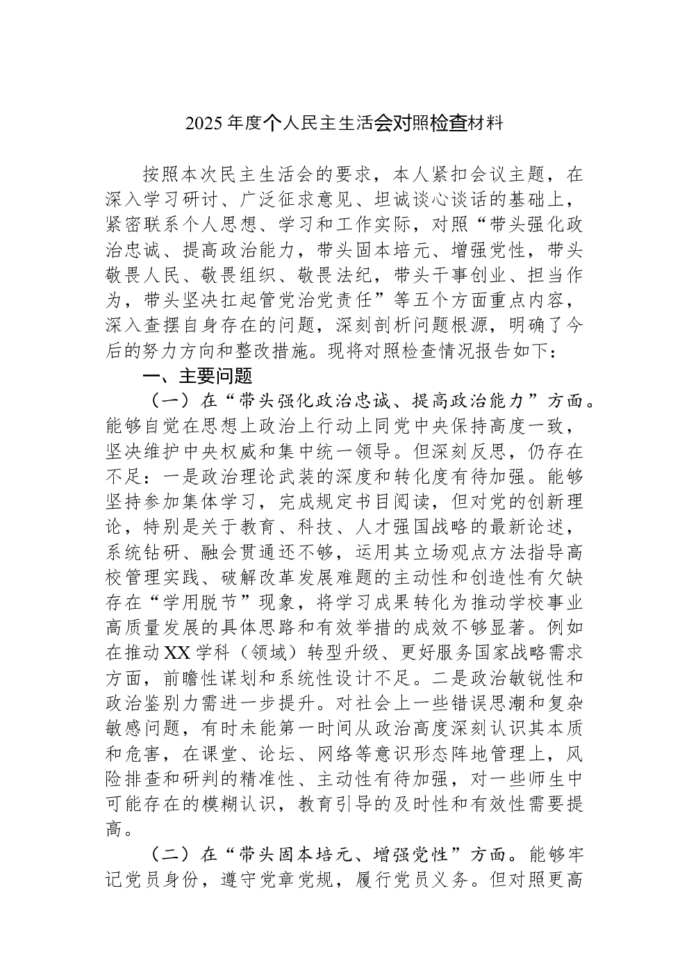 (22篇)2022年度民主生活会六个带头对照检查材料