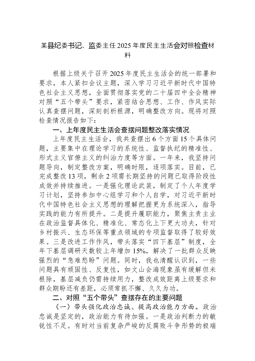 (22篇)2022年度民主生活会六个带头对照检查材料