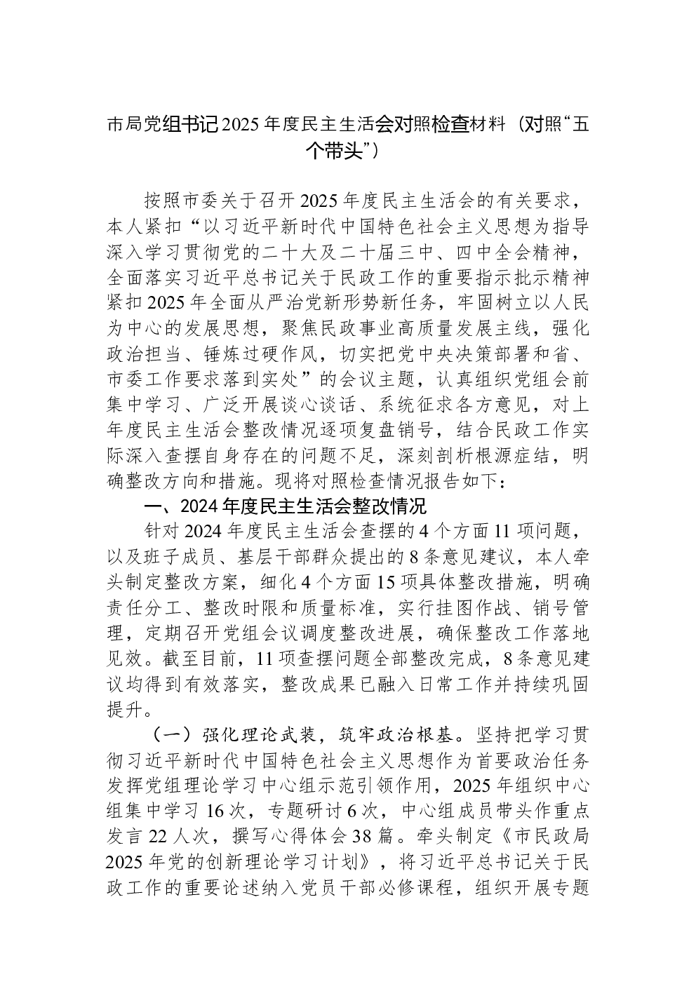 领导班子2022年民主生活会(六个带头)对照检查材料