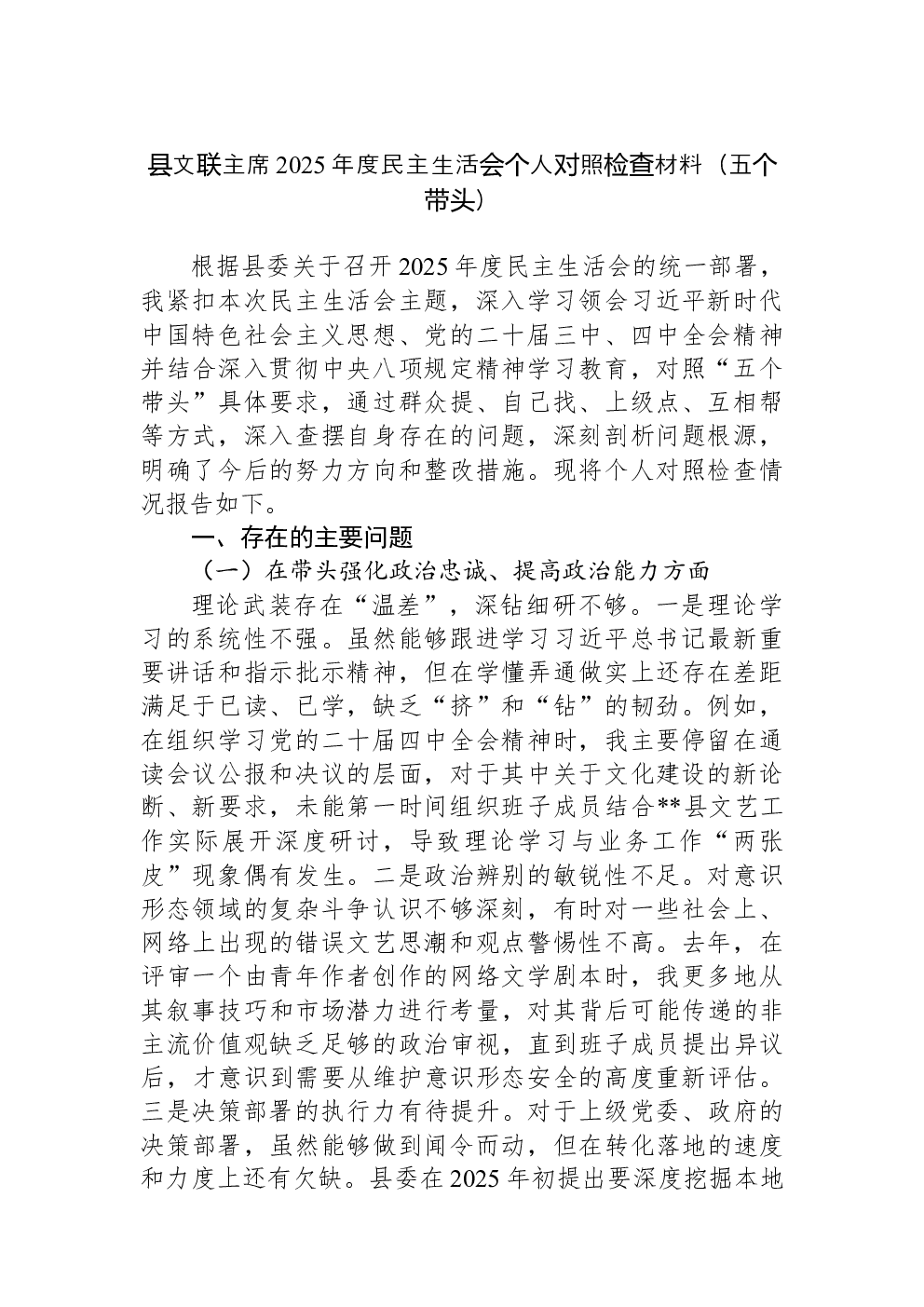 (22篇)2022年度民主生活会六个带头对照检查材料