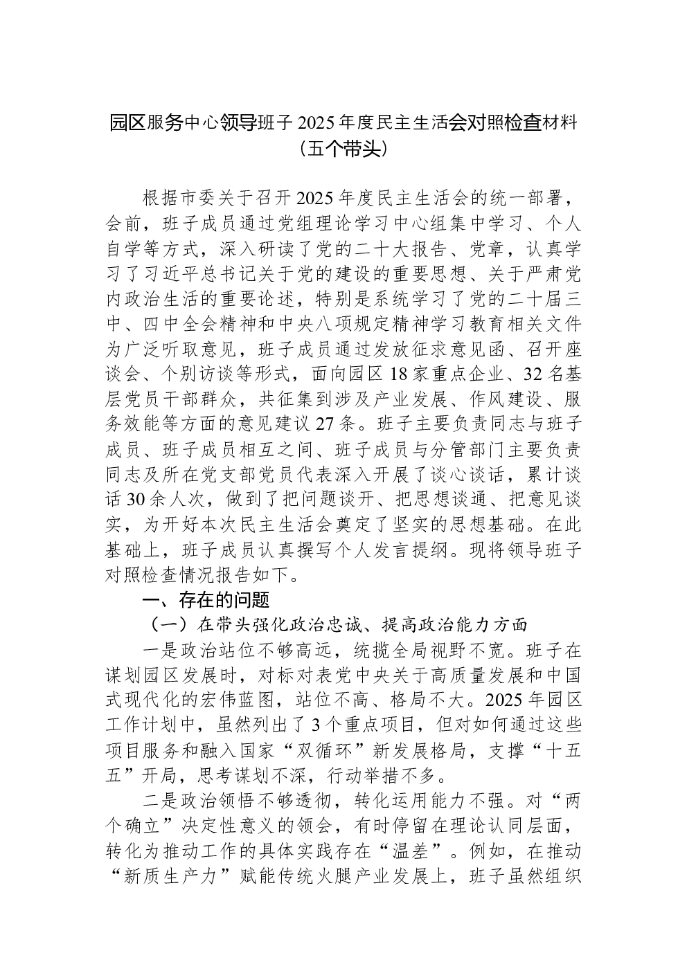 领导班子2022年民主生活会(六个带头)对照检查材料