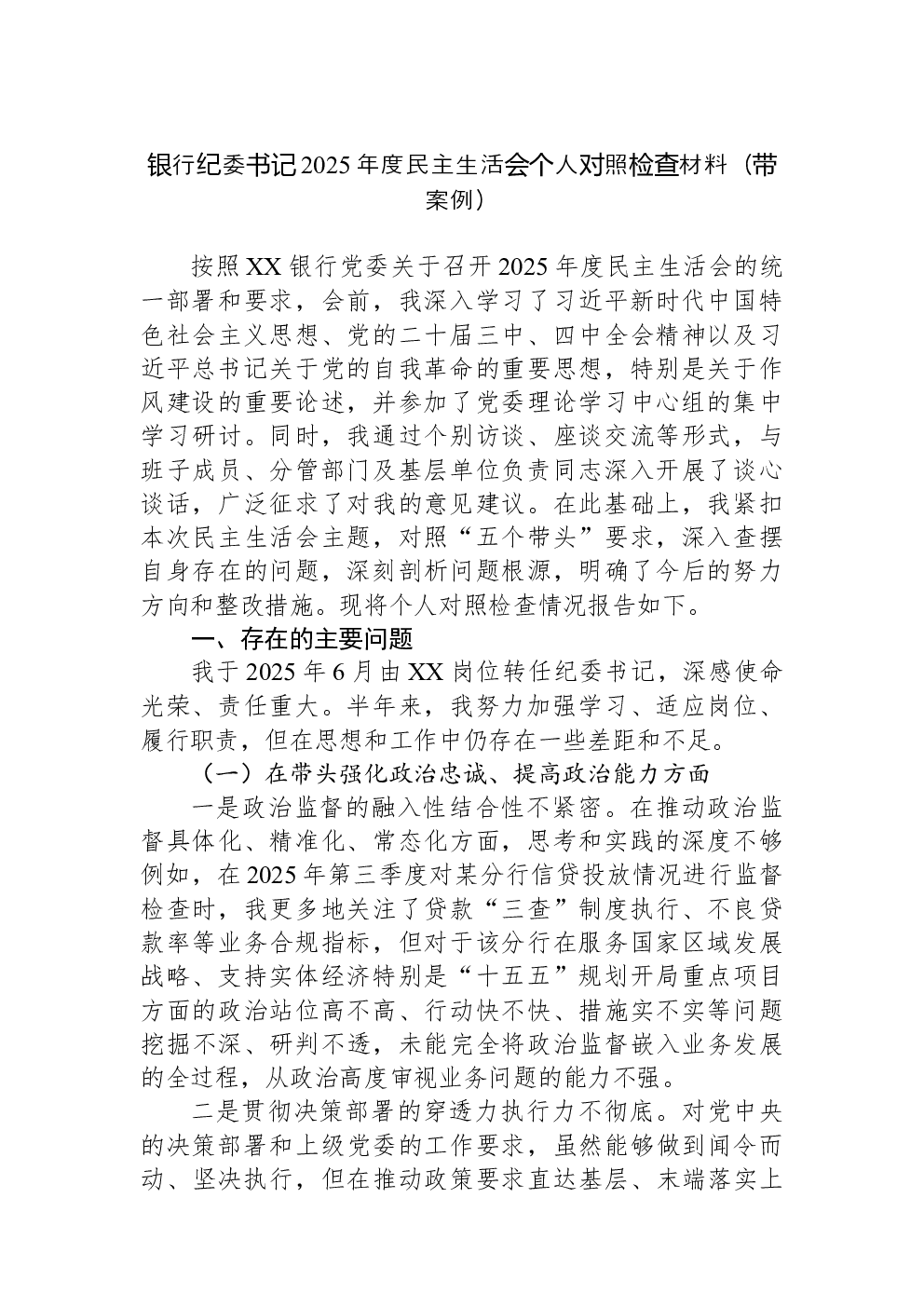 (22篇)2022年度民主生活会六个带头对照检查材料