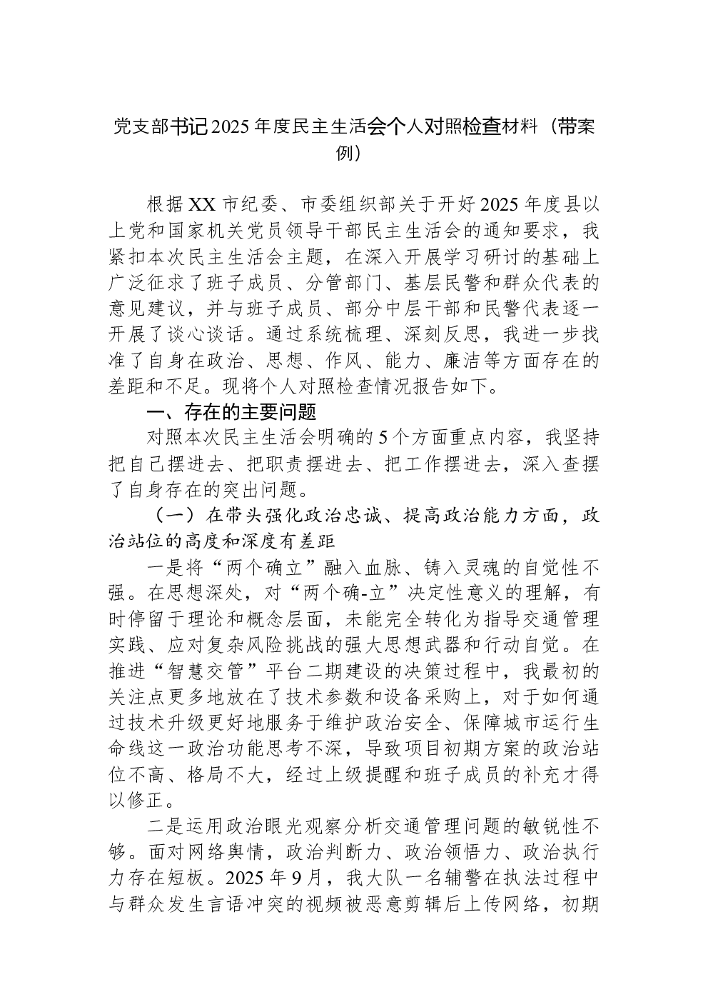 (22篇)2022年度民主生活会六个带头对照检查材料