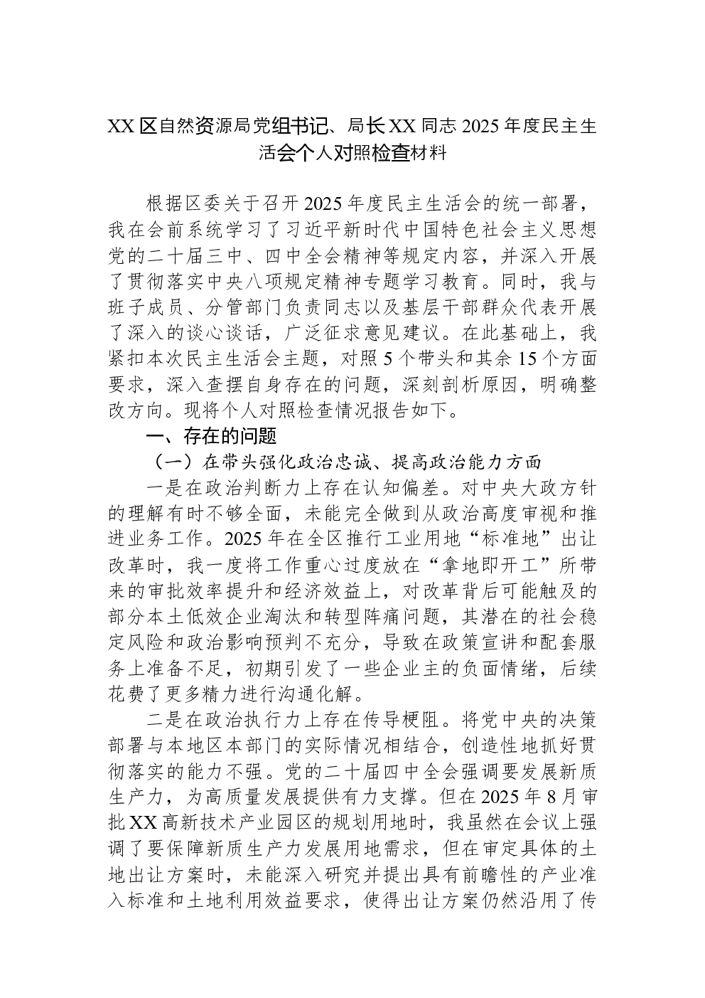 2022年度组织生活会个人对照检查材料(党员对照六个方面)