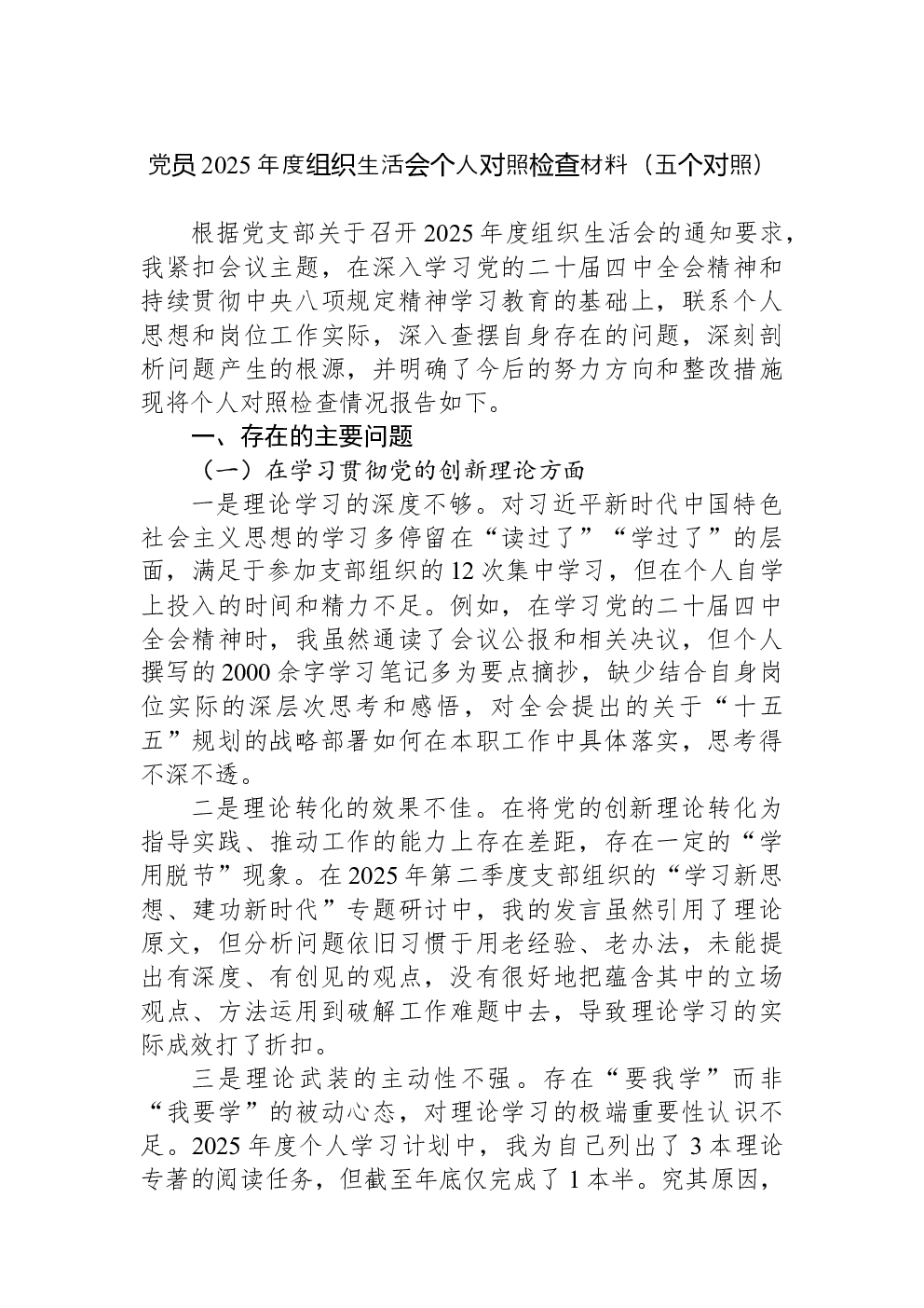 2022年度组织生活会个人对照检查材料(党员对照六个方面)