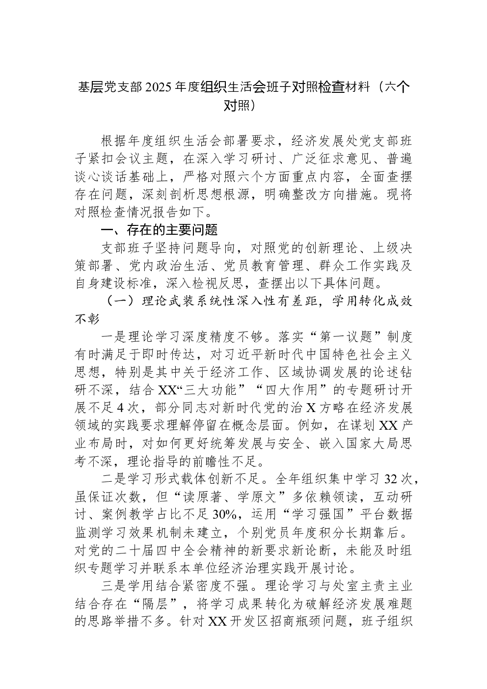 2022年度组织生活会个人对照检查材料(党员对照六个方面)