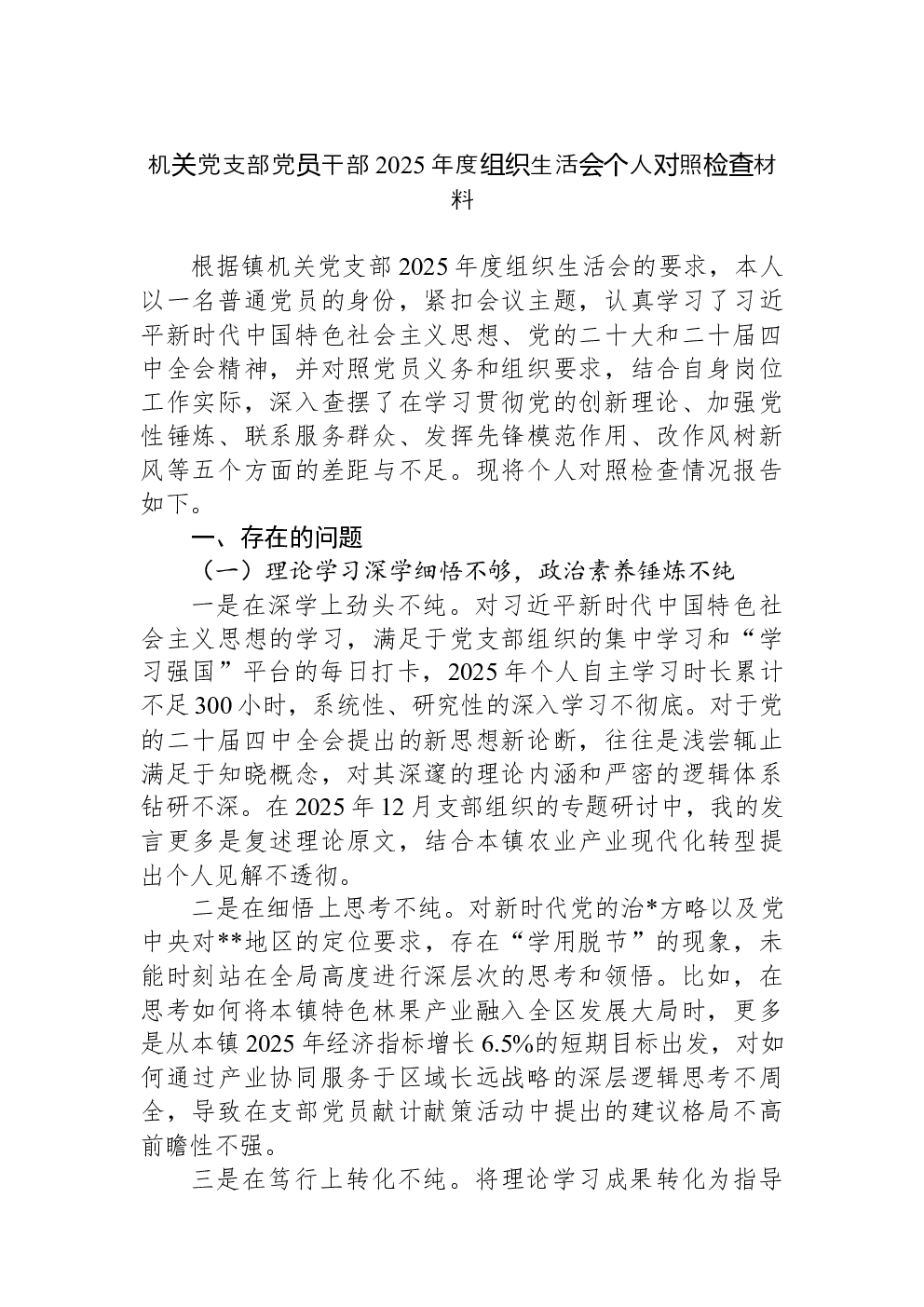 2022年度组织生活会个人对照检查材料(党员对照六个方面)