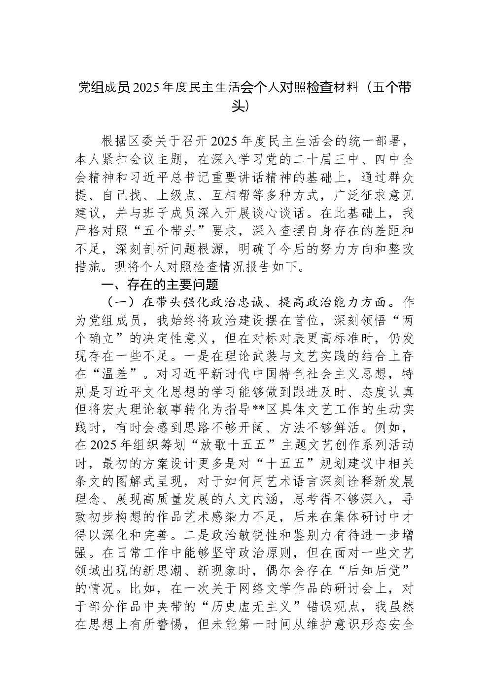(22篇)2022年度民主生活会六个带头对照检查材料