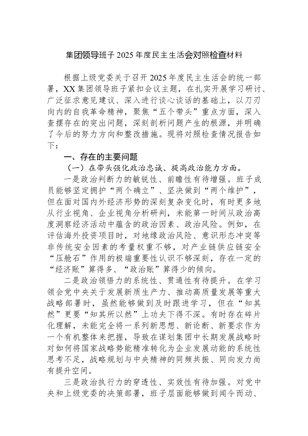 领导班子2022年民主生活会(六个带头)对照检查材料