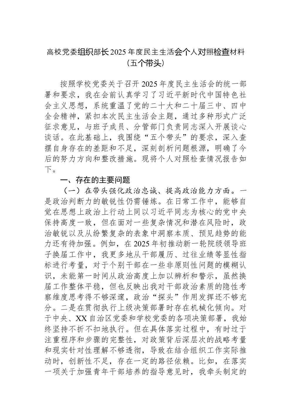 (22篇)2022年度民主生活会六个带头对照检查材料