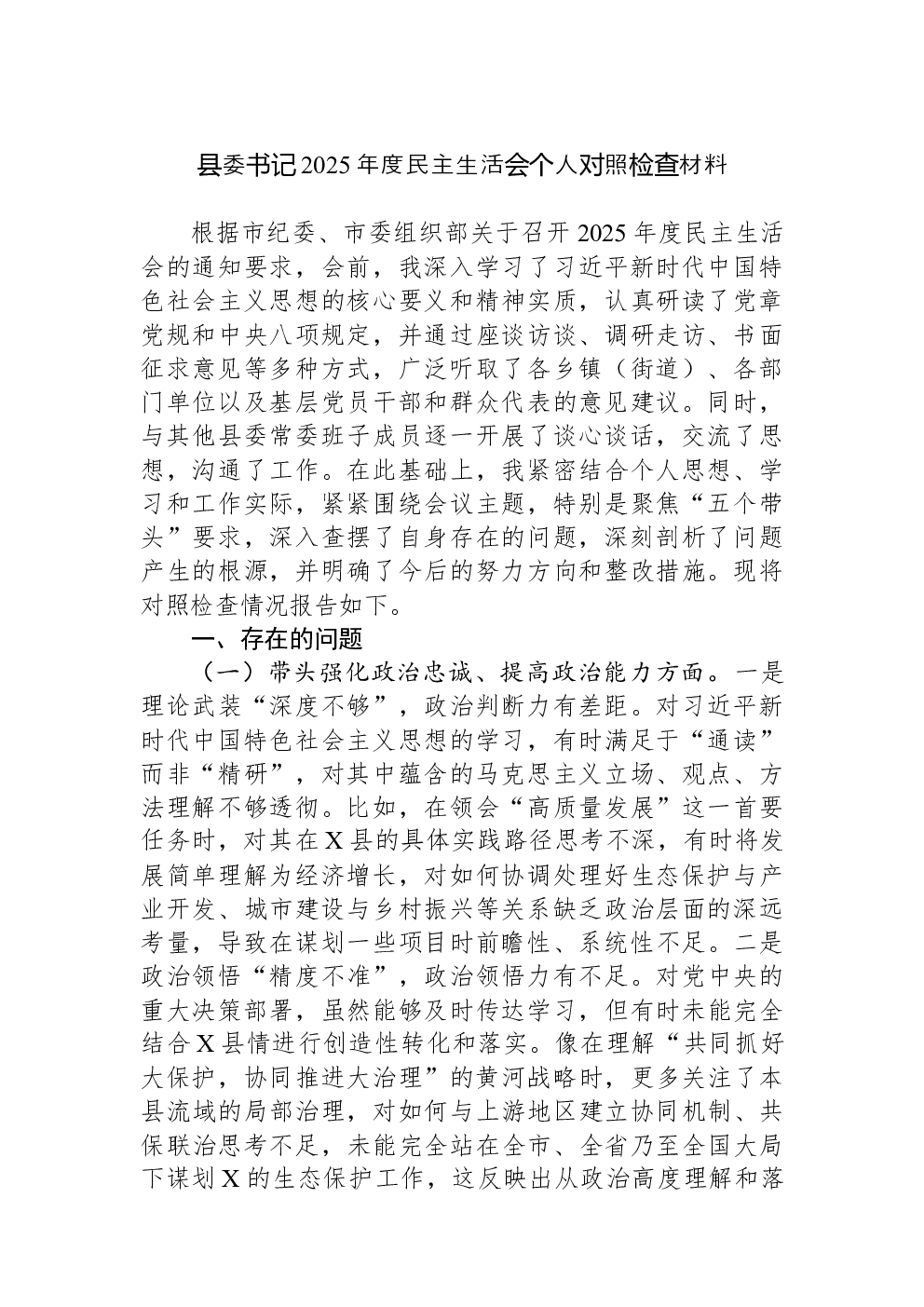 (22篇)2022年度民主生活会六个带头对照检查材料