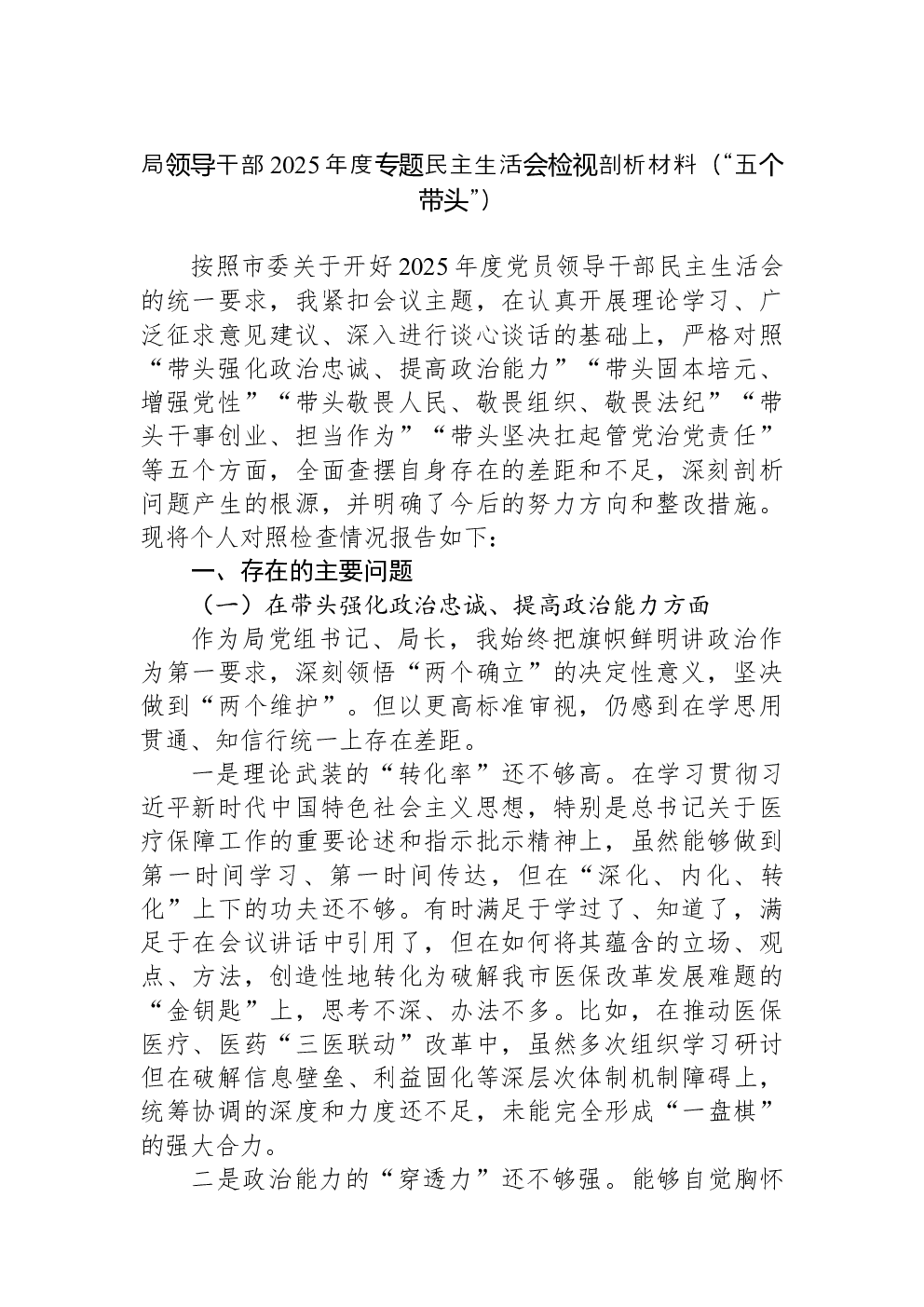 领导班子2022年民主生活会(六个带头)对照检查材料