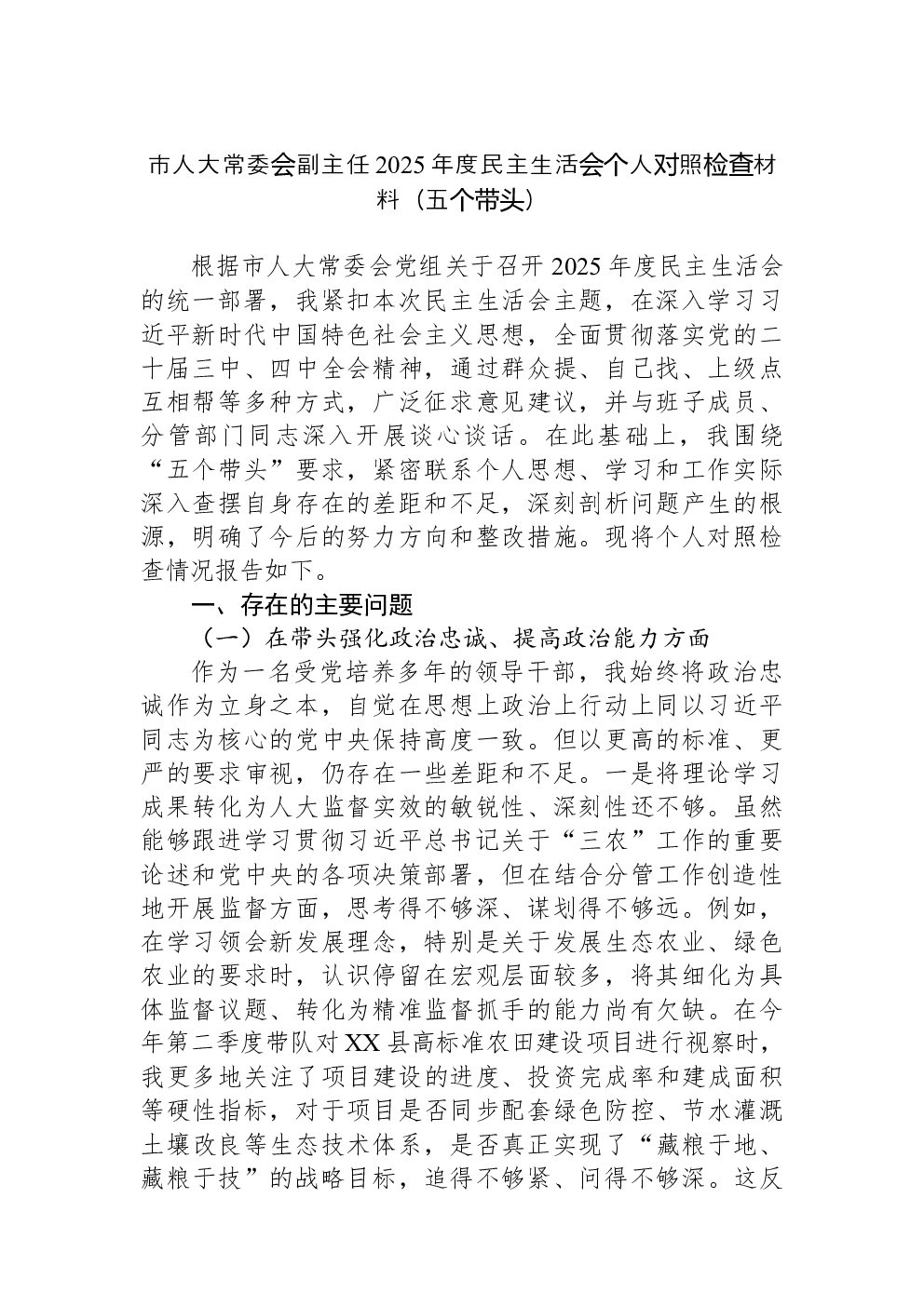 (22篇)2022年度民主生活会六个带头对照检查材料