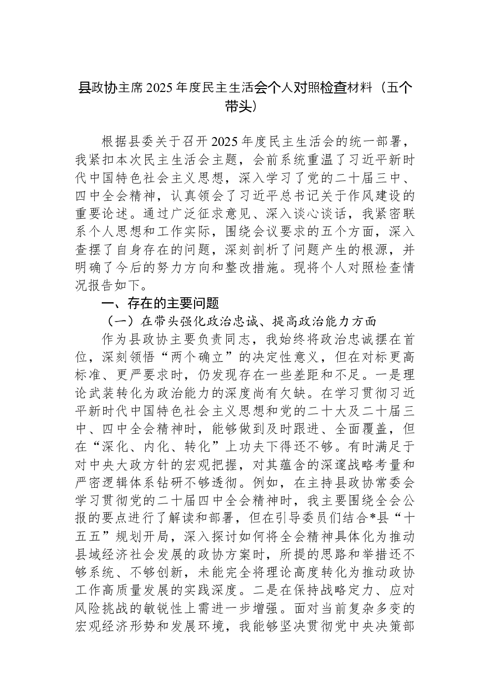 (22篇)2022年度民主生活会六个带头对照检查材料