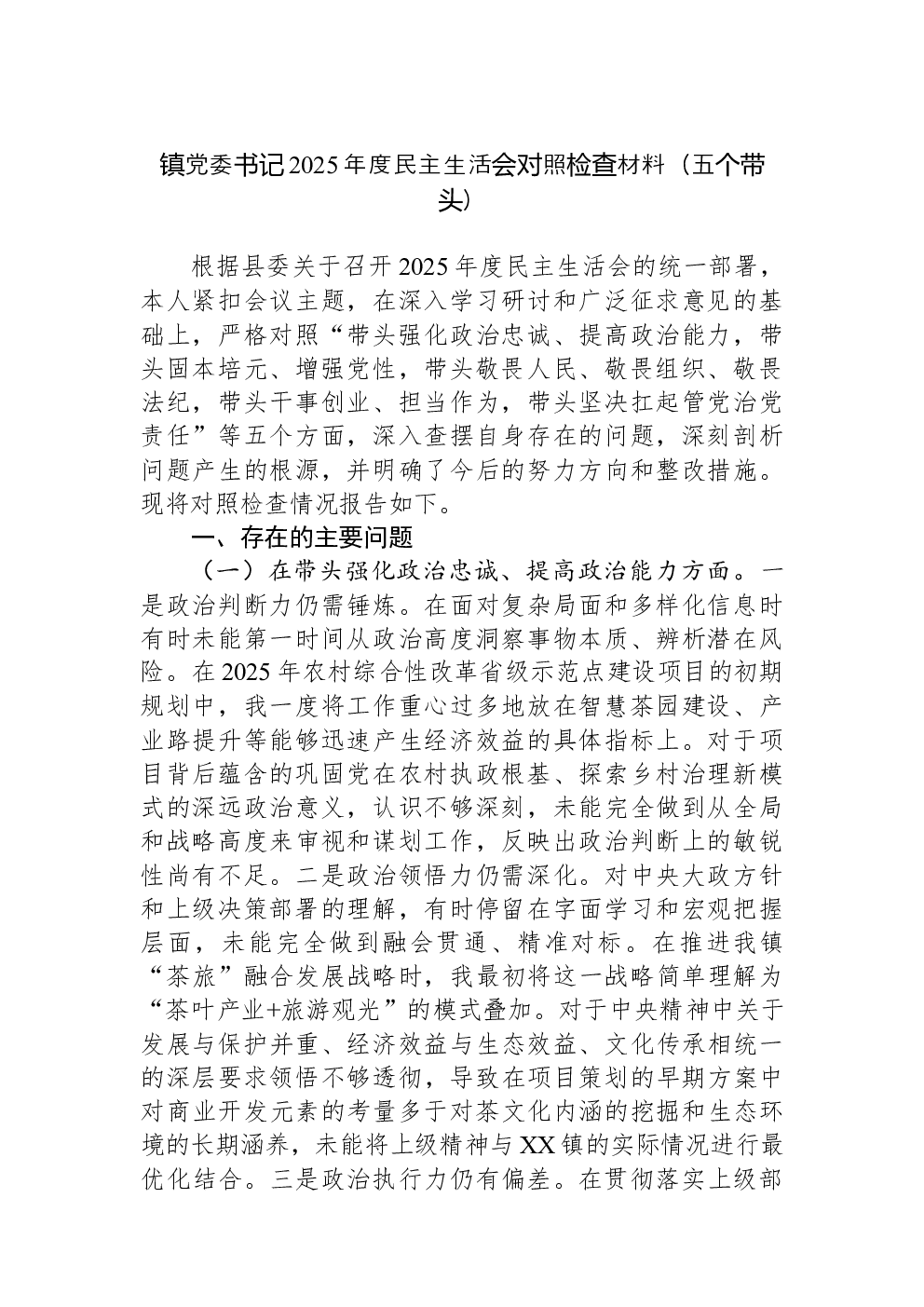 领导班子2022年民主生活会(六个带头)对照检查材料