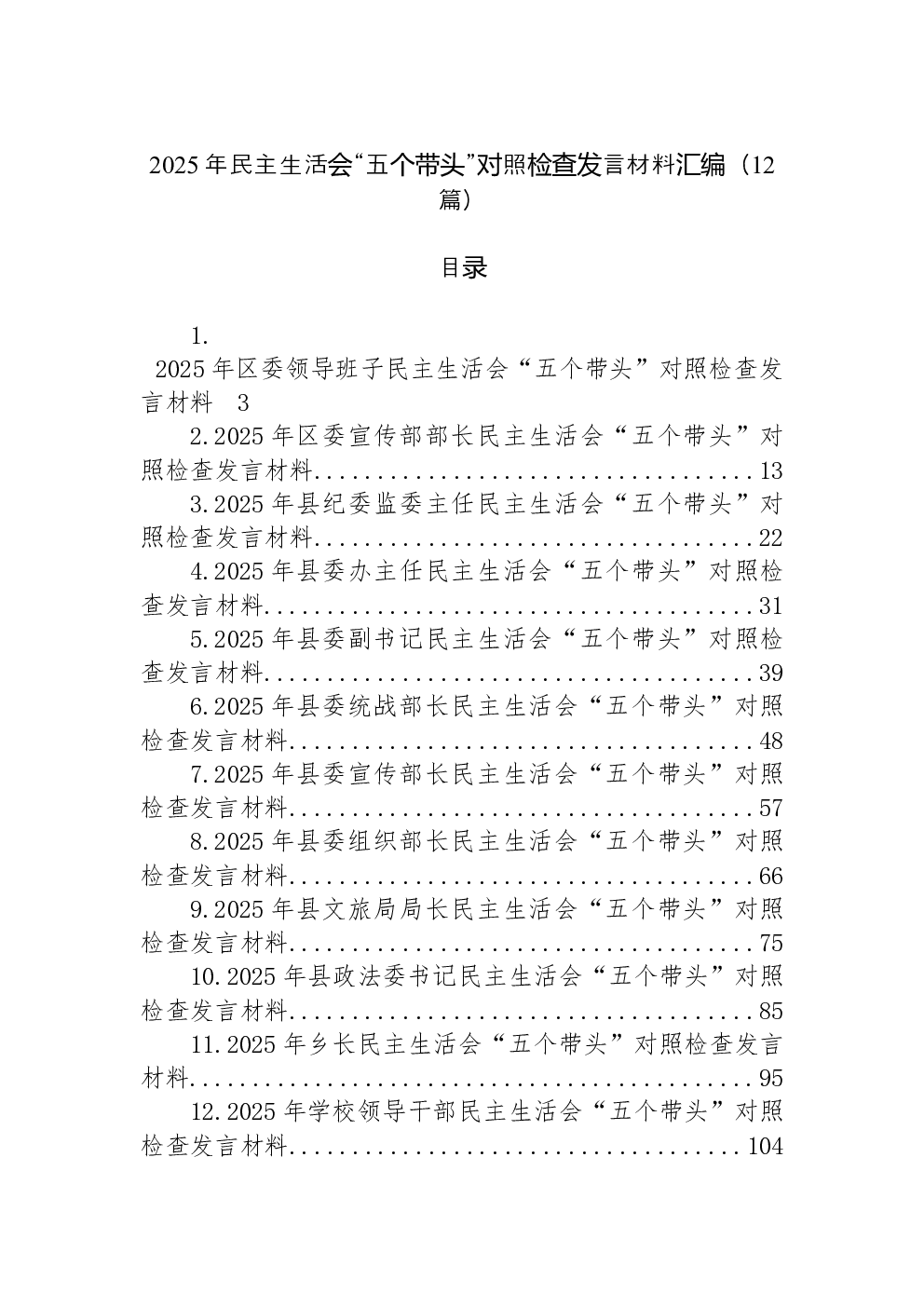 (22篇)2022年度民主生活会六个带头对照检查材料