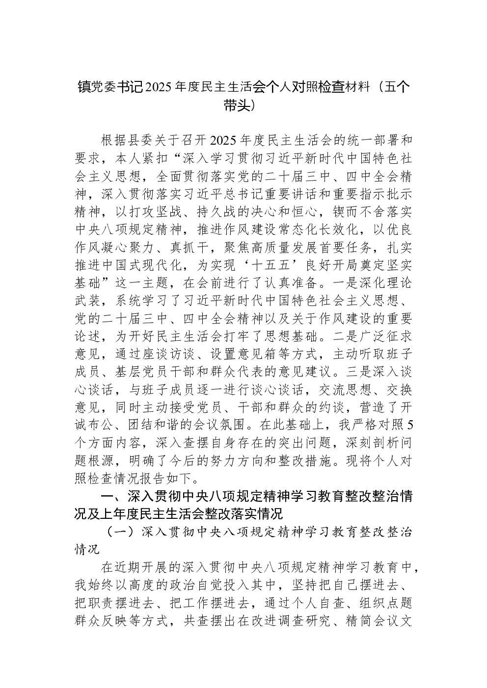 (22篇)2022年度民主生活会六个带头对照检查材料