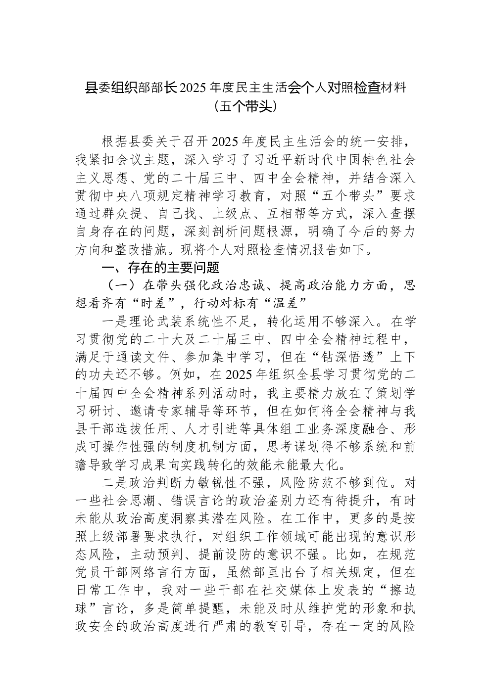 (22篇)2022年度民主生活会六个带头对照检查材料