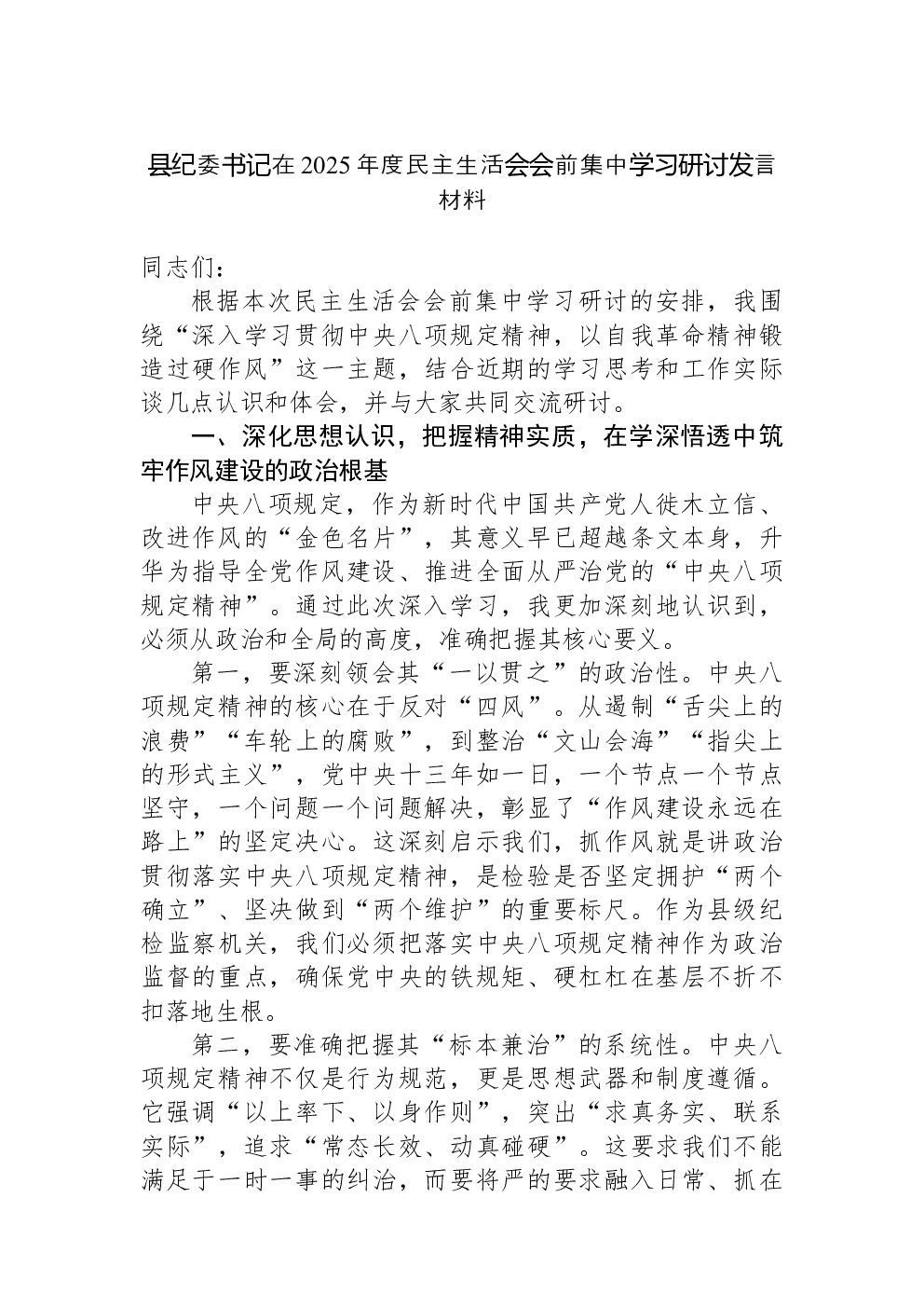 国企纪委书记贯彻中央八项规定精神学习教育交流研讨材料