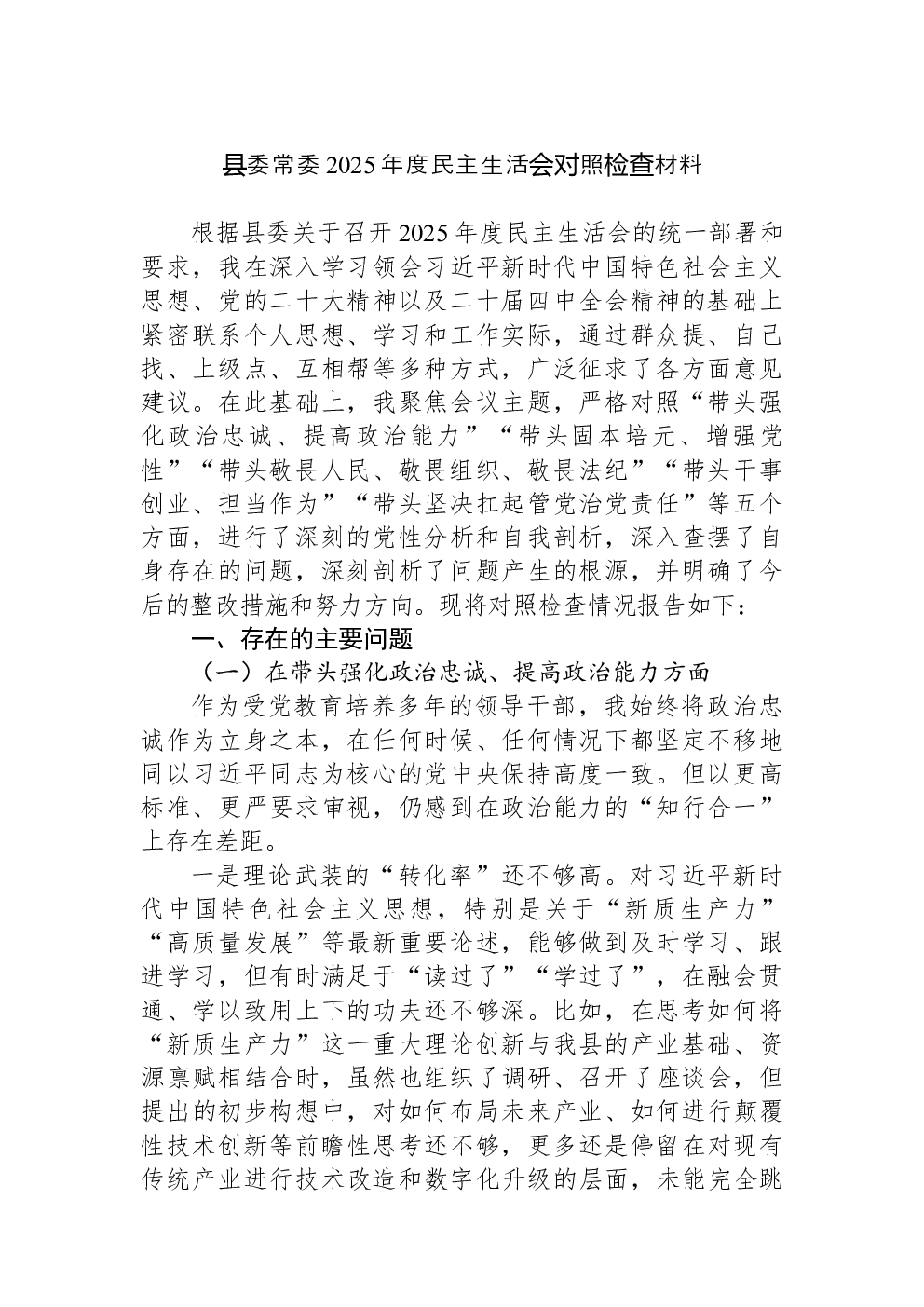 (22篇)2022年度民主生活会六个带头对照检查材料