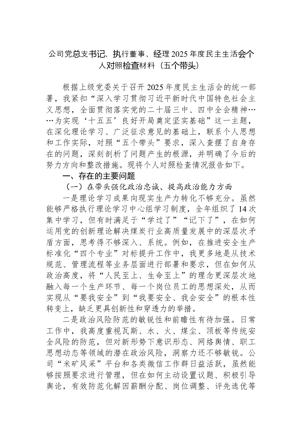 (22篇)2022年度民主生活会六个带头对照检查材料