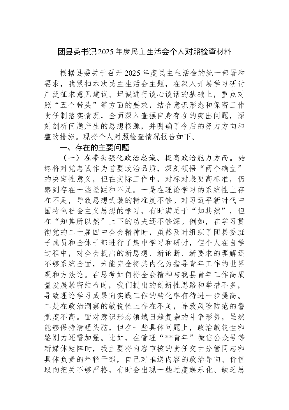 (22篇)2022年度民主生活会六个带头对照检查材料