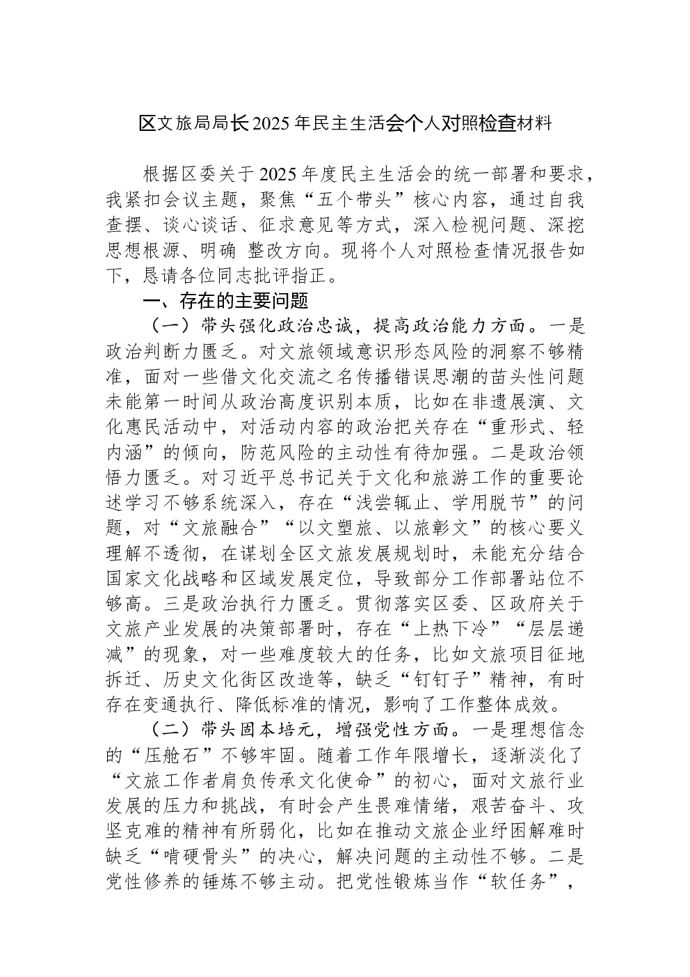 (22篇)2022年度民主生活会六个带头对照检查材料