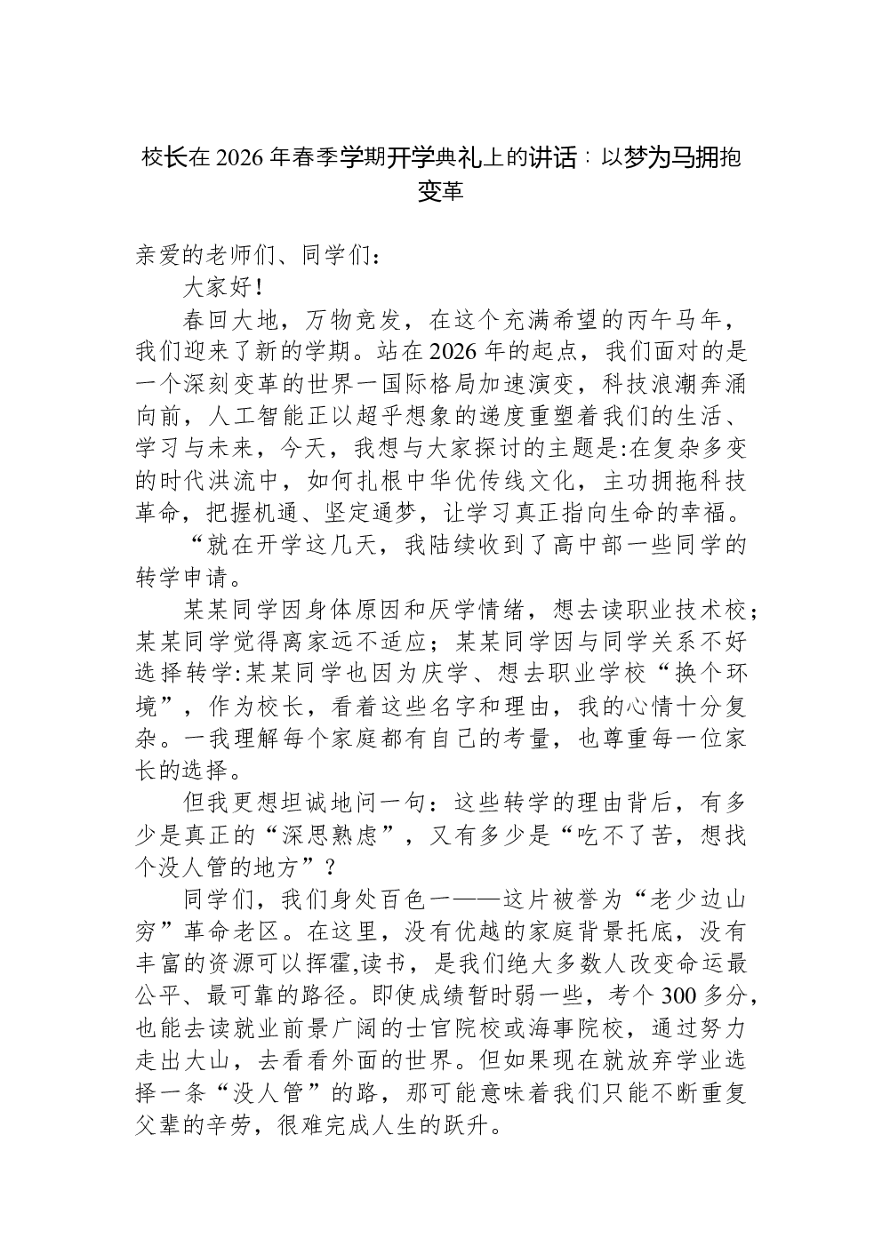 当前位置 > 领导讲话
