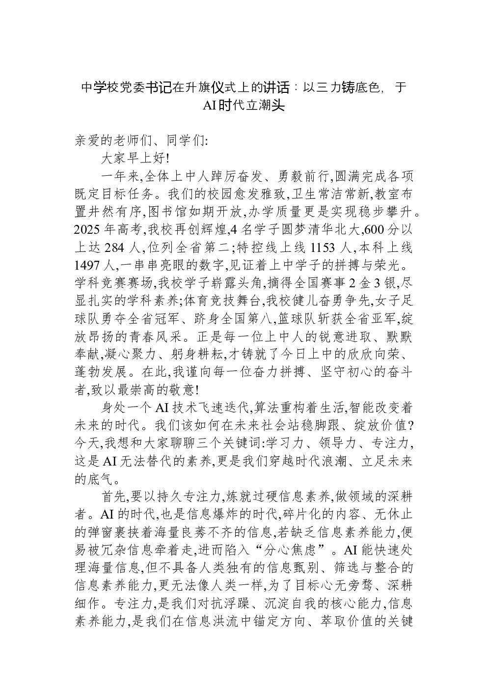 当前位置 > 领导讲话