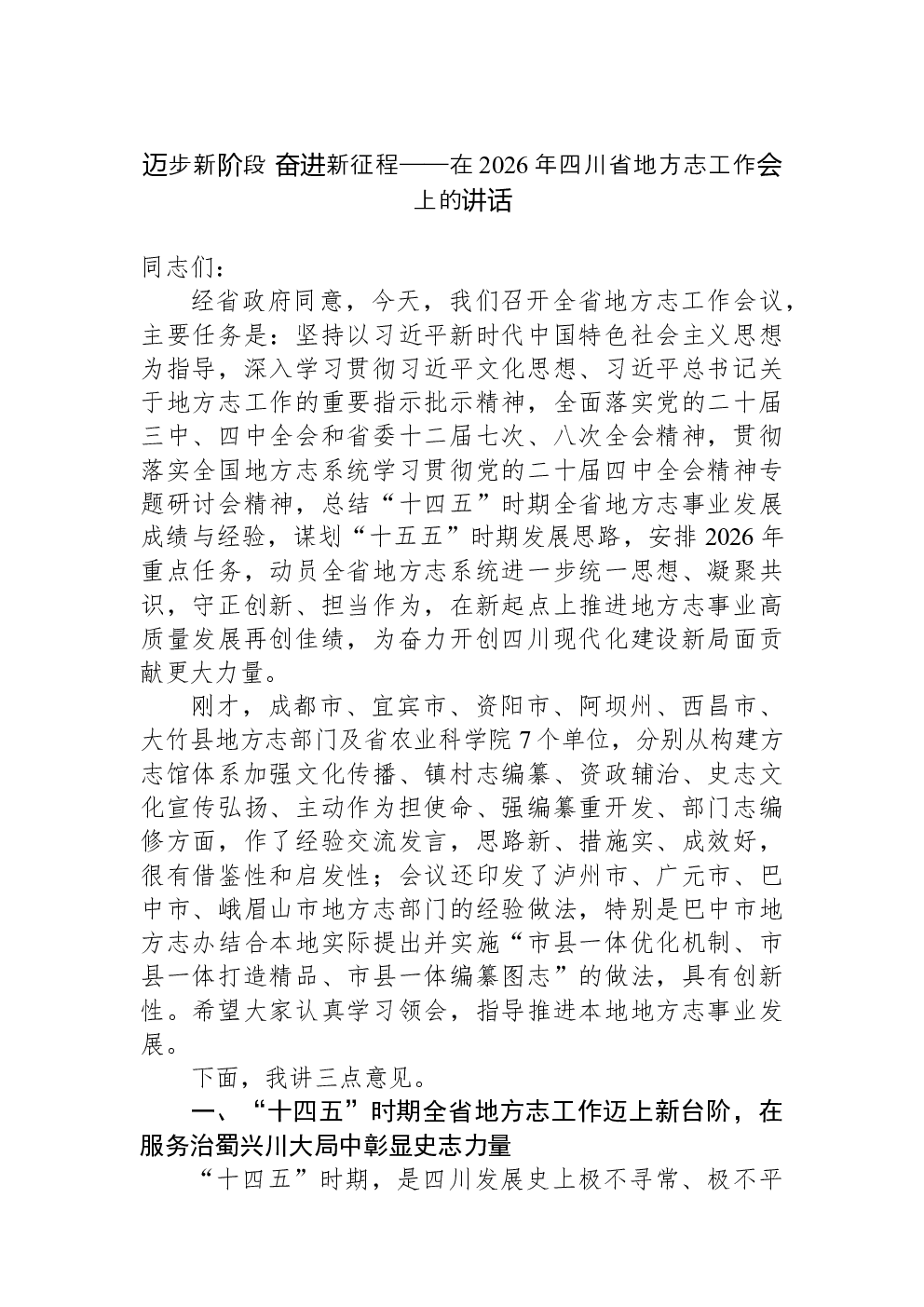 当前位置 > 领导讲话