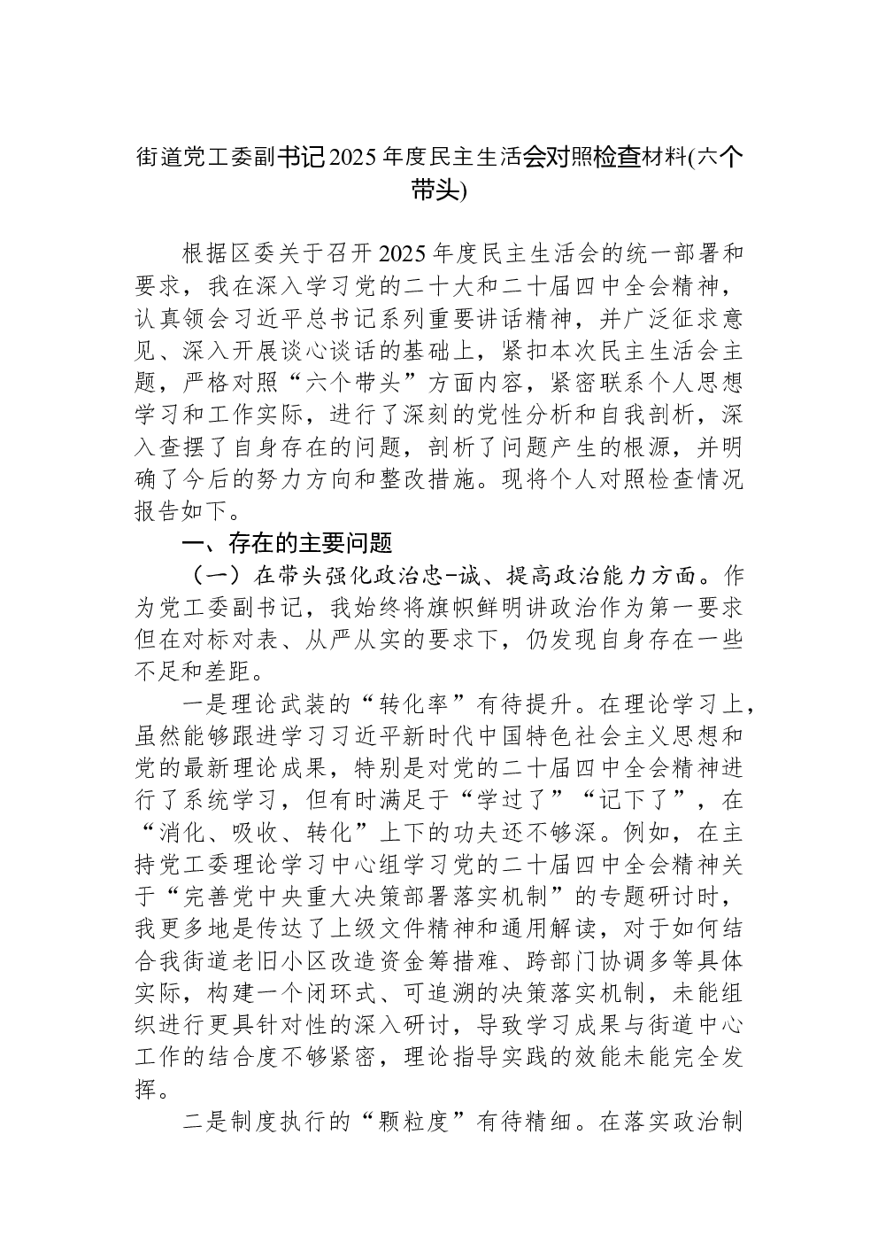 (22篇)2022年度民主生活会六个带头对照检查材料