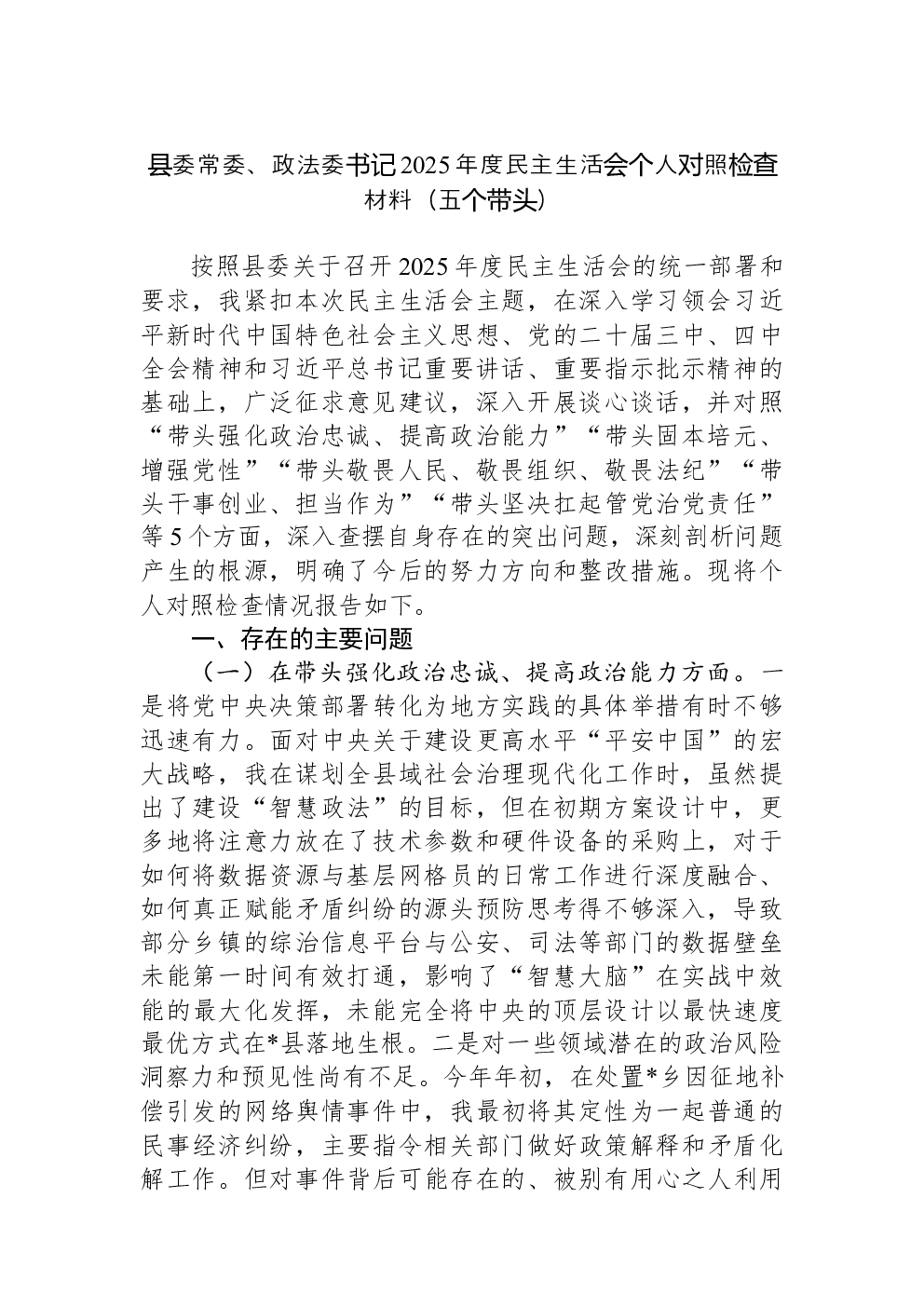 领导班子2022年民主生活会(六个带头)对照检查材料