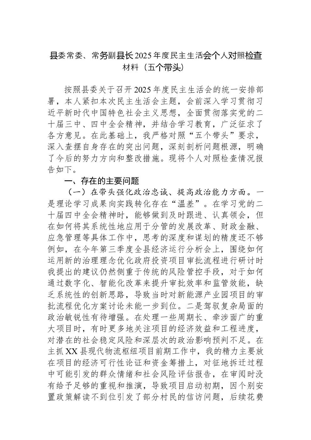 领导班子2022年民主生活会(六个带头)对照检查材料