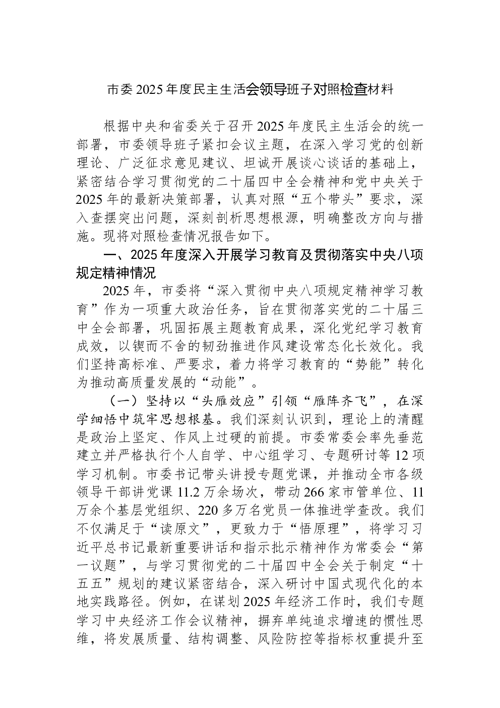 领导班子2022年民主生活会(六个带头)对照检查材料