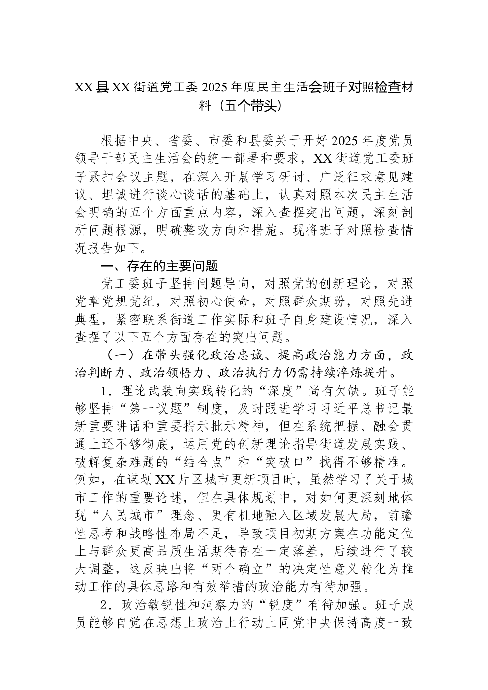 (22篇)2022年度民主生活会六个带头对照检查材料